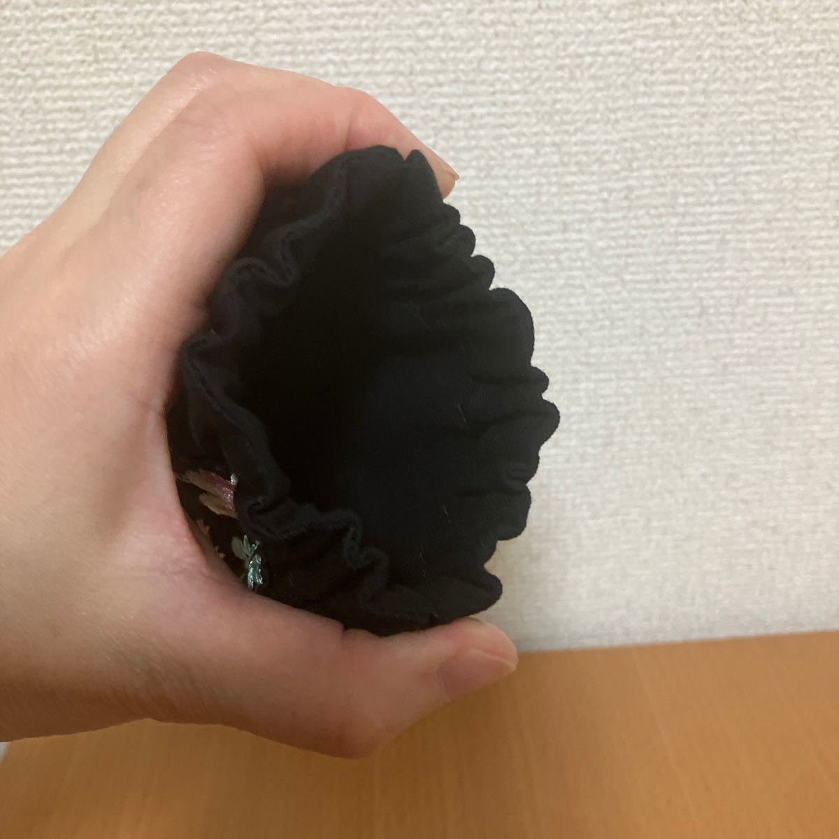 平置き 縦 約10センチ(口金含む)横 約12センチ(一番広い部分)マチなし