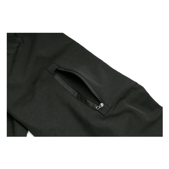 右腕にジップポケット、前には大きいジップポケットが2つあります。