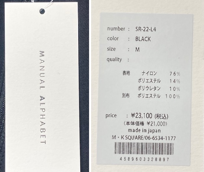 表地:ナイロン76% ポリエステル14% ポリウレタン10%