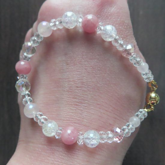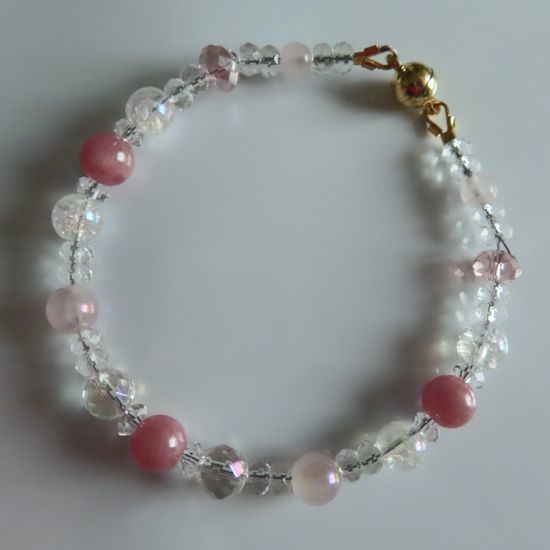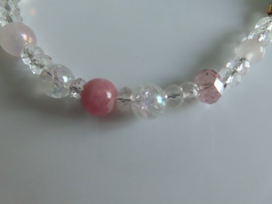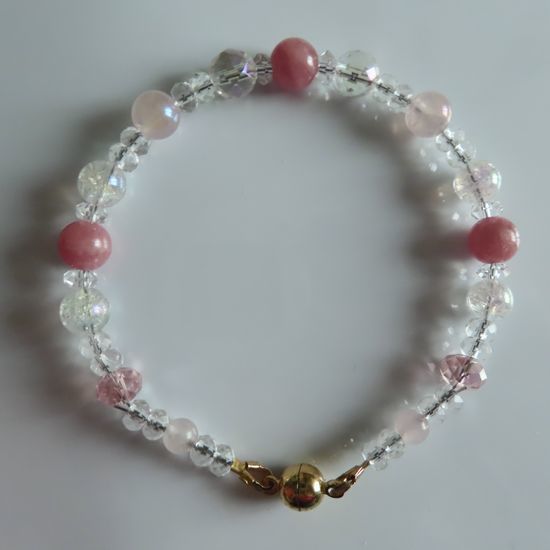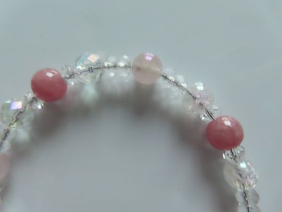 インカローズ、ローズクォーツ、コスモオーラ、水晶のワイヤーブレスレット | |||