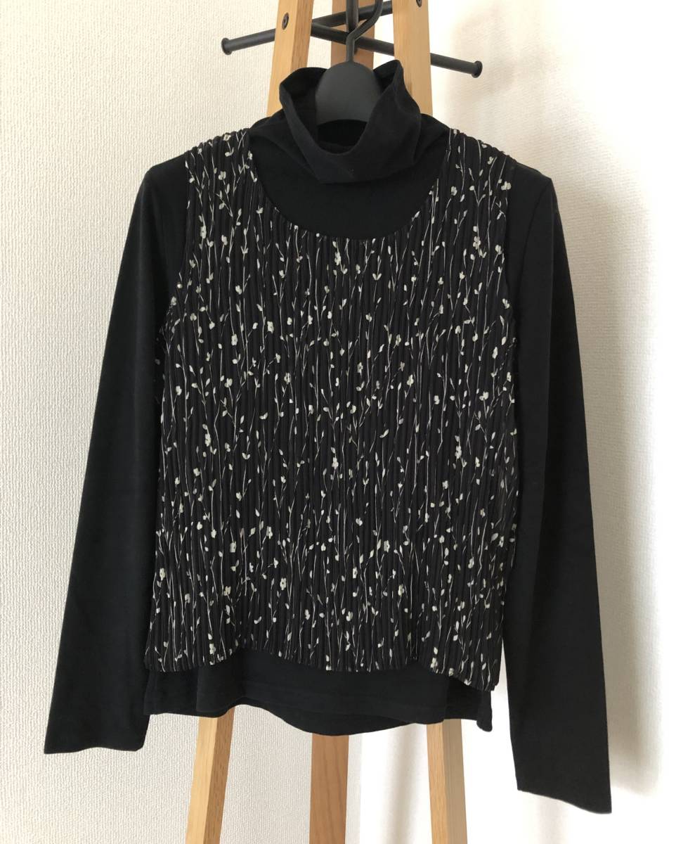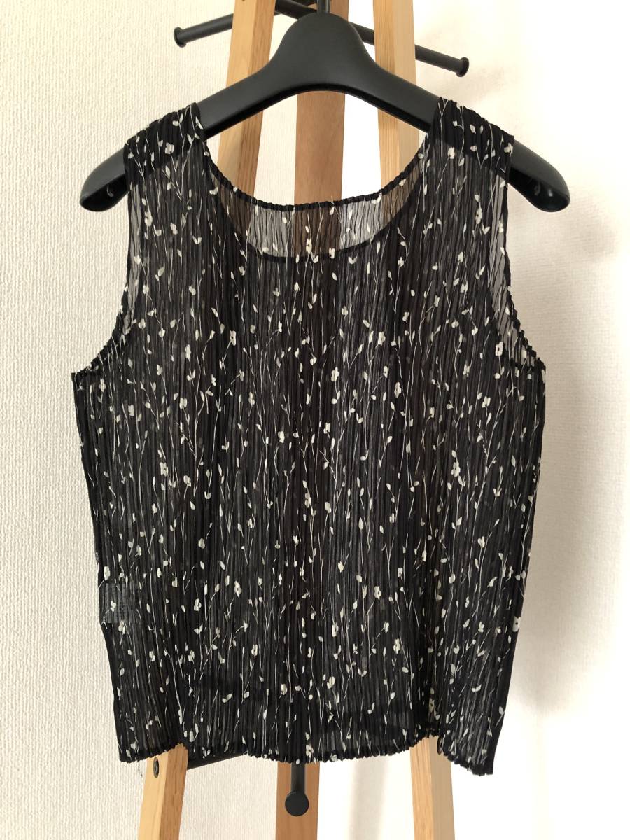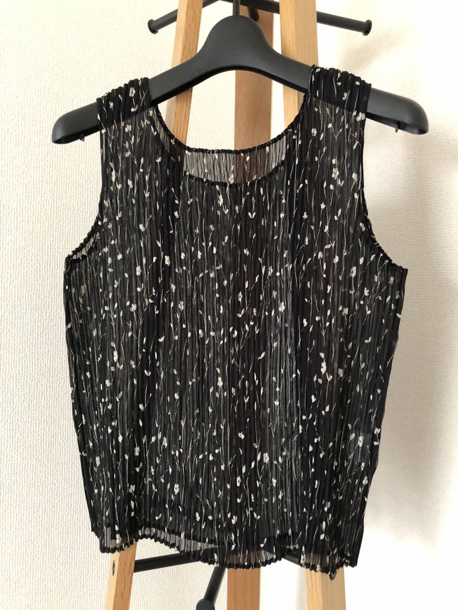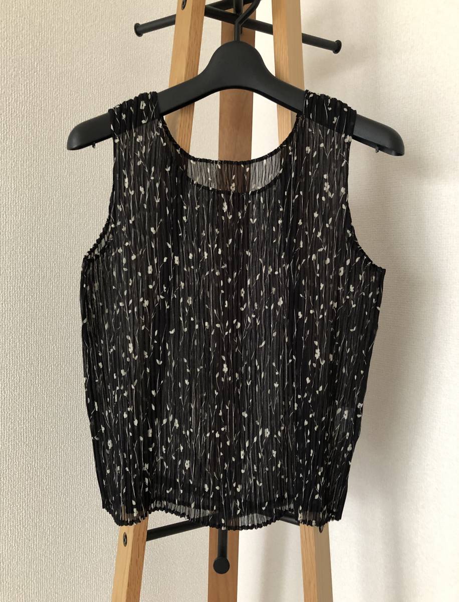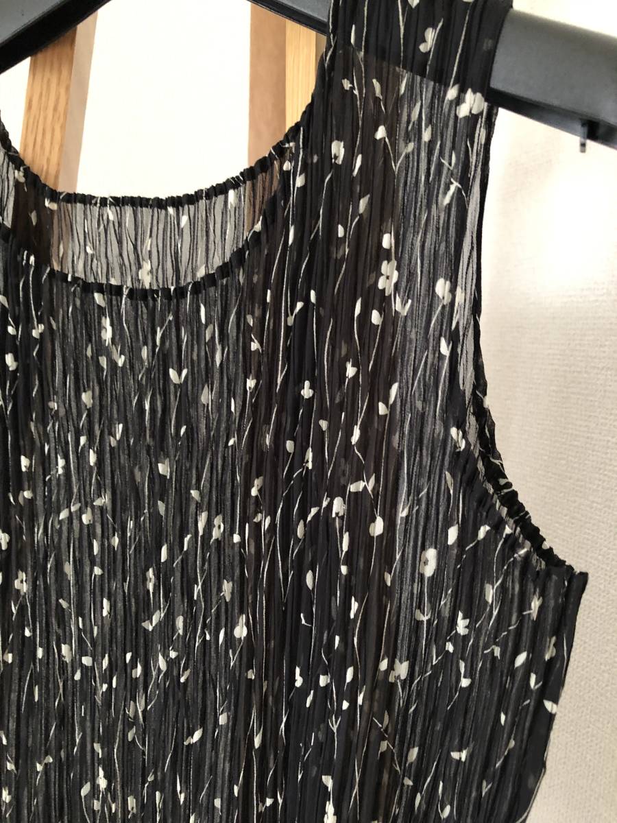 ☆ プリーツ加工 ノースリーブ カットソー 花柄 黒 ☆