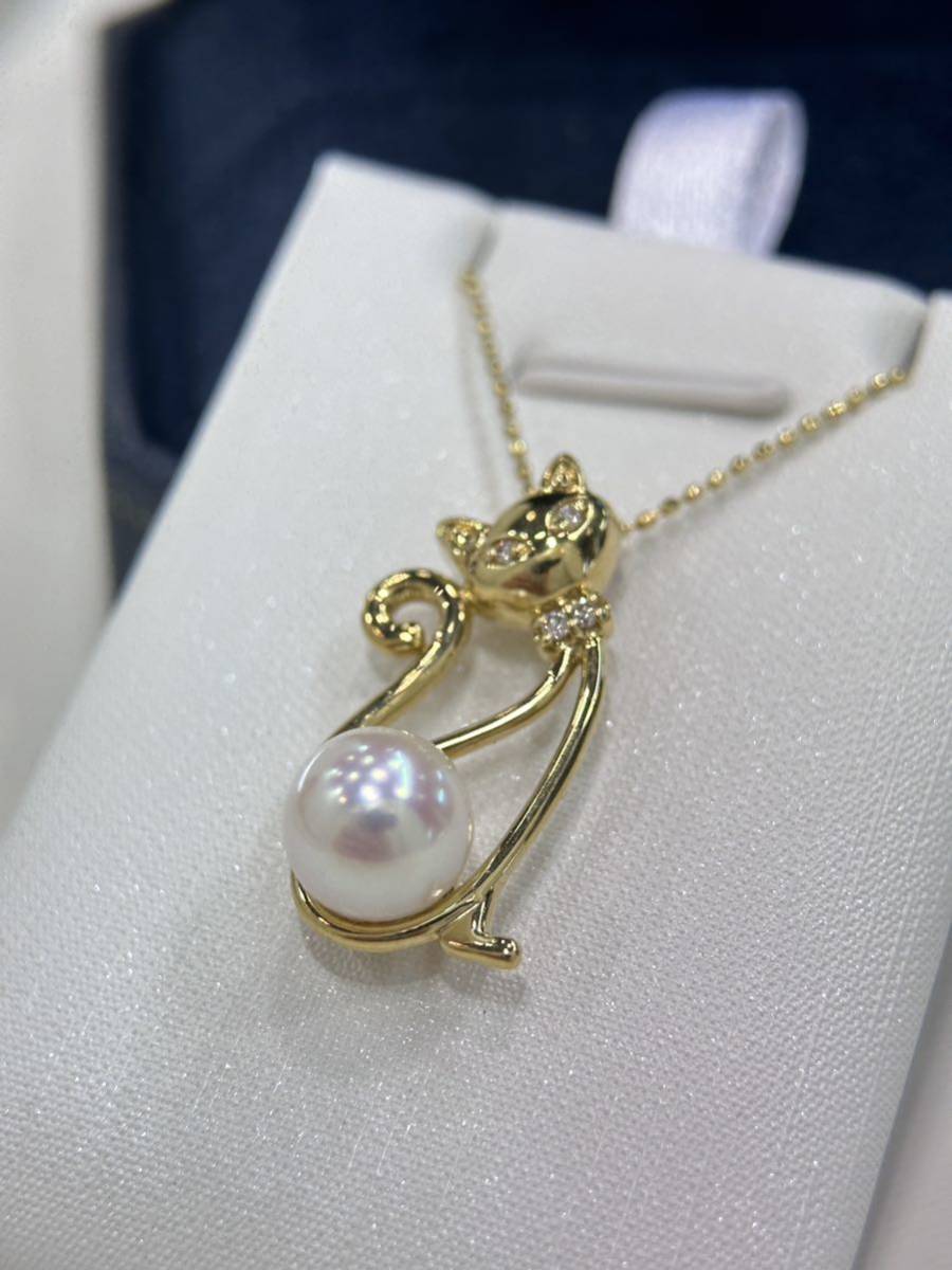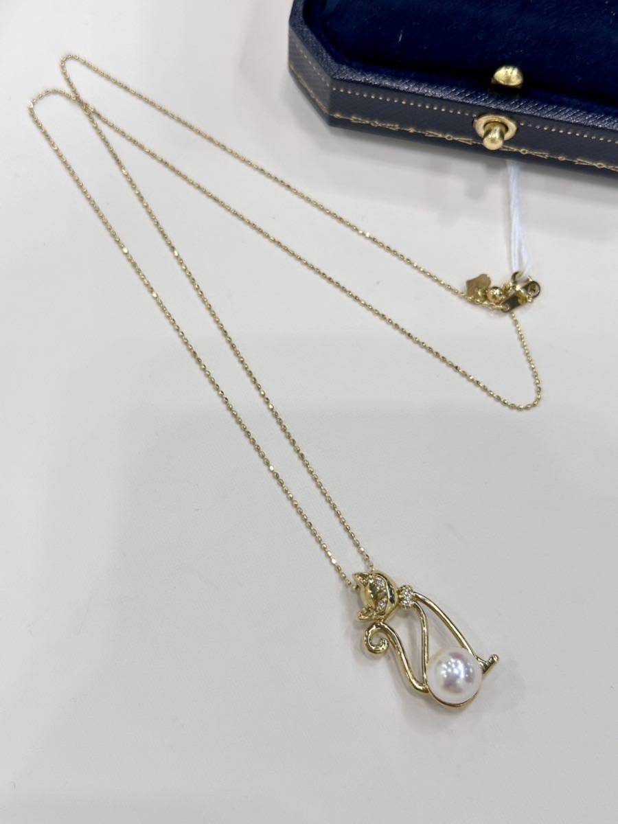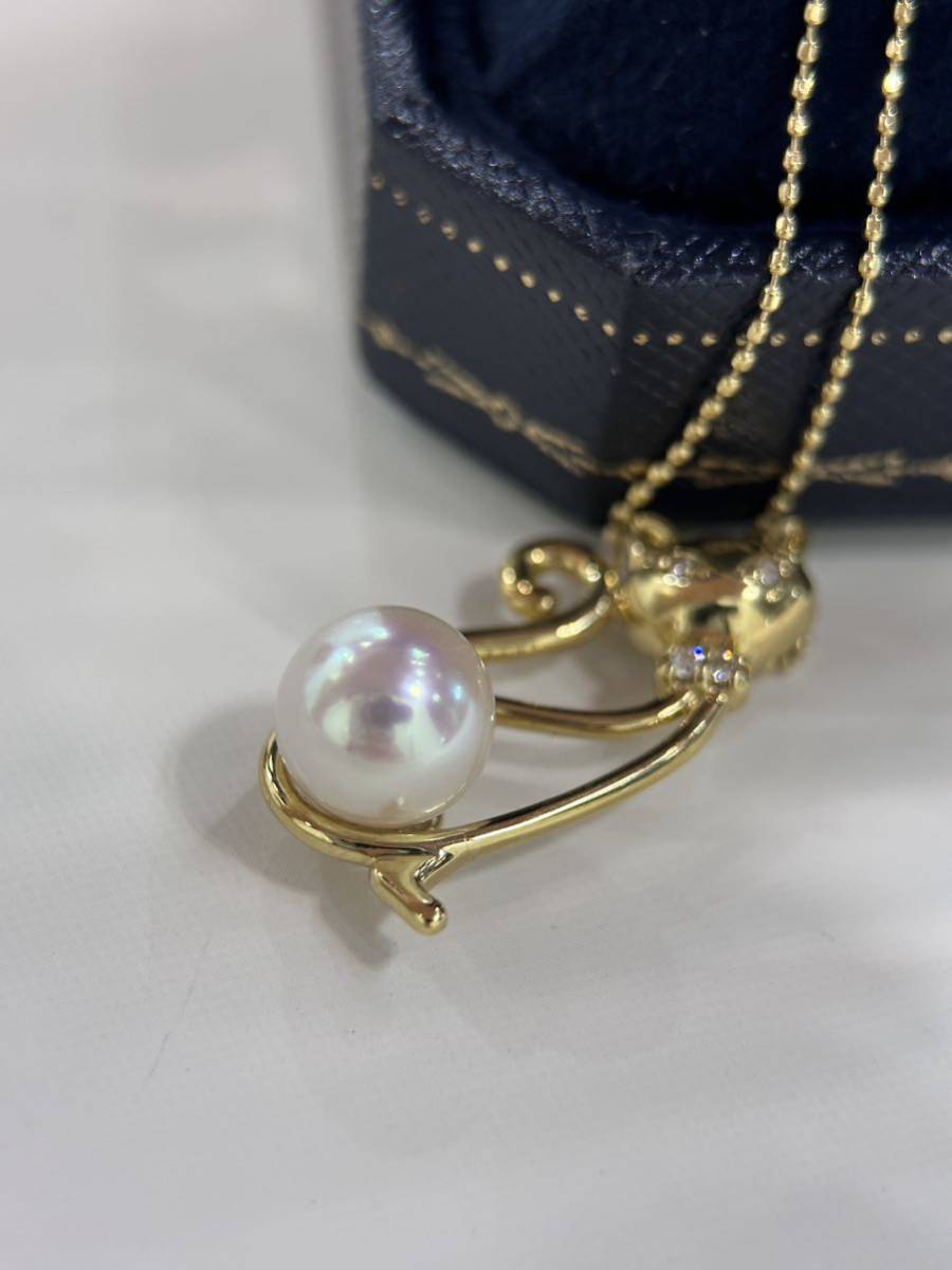 K18金を使用した天然ダイヤモンドアコヤパールペンダントになります。