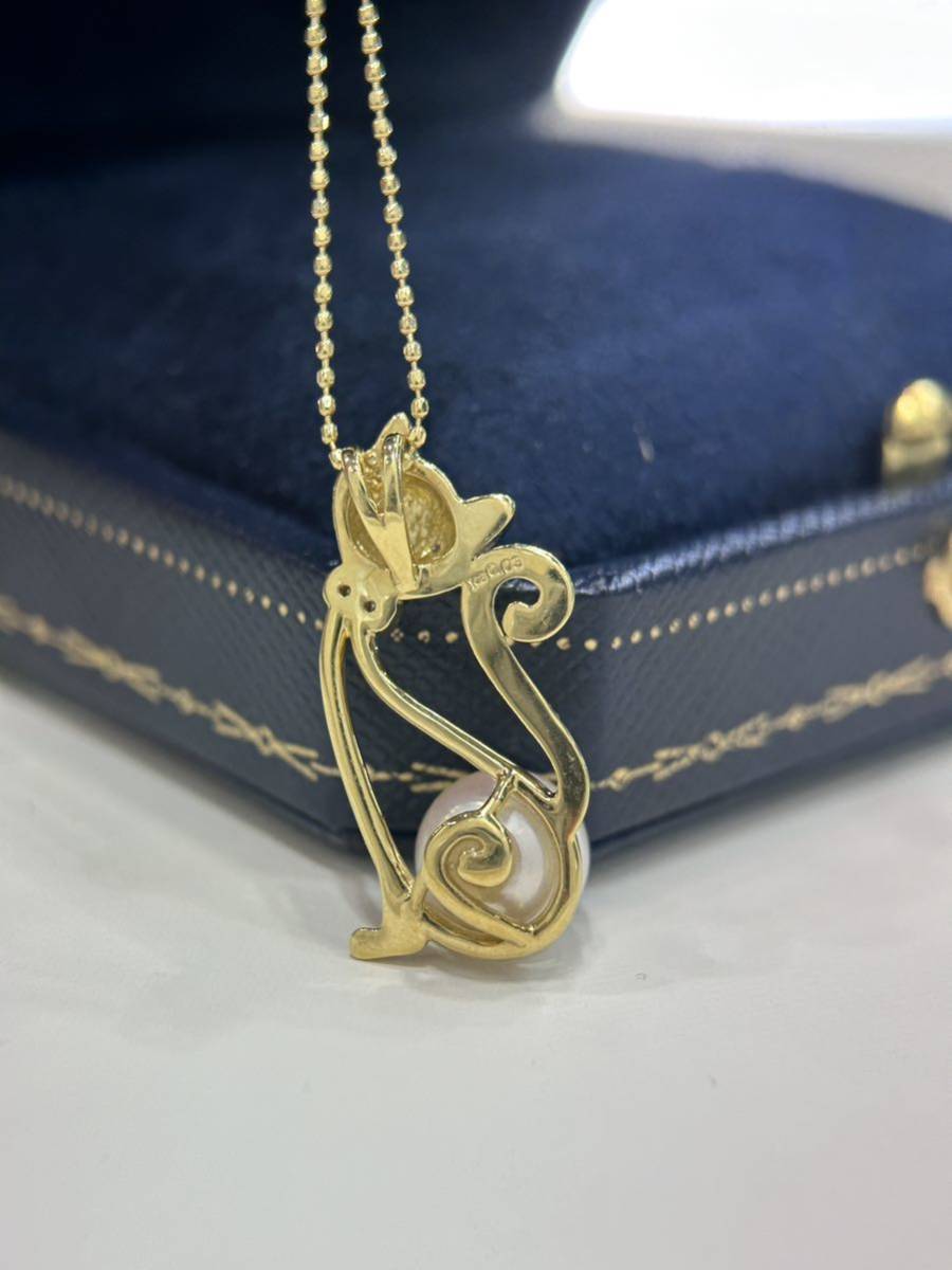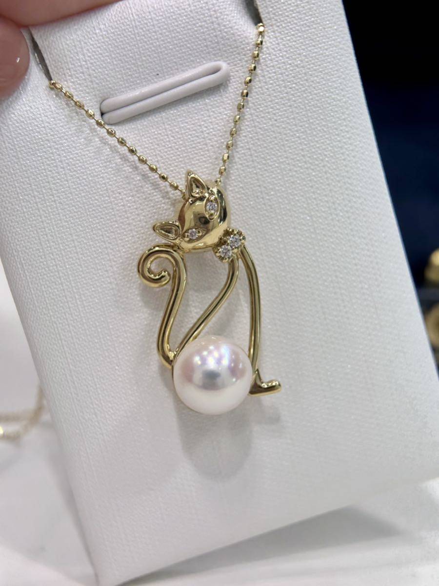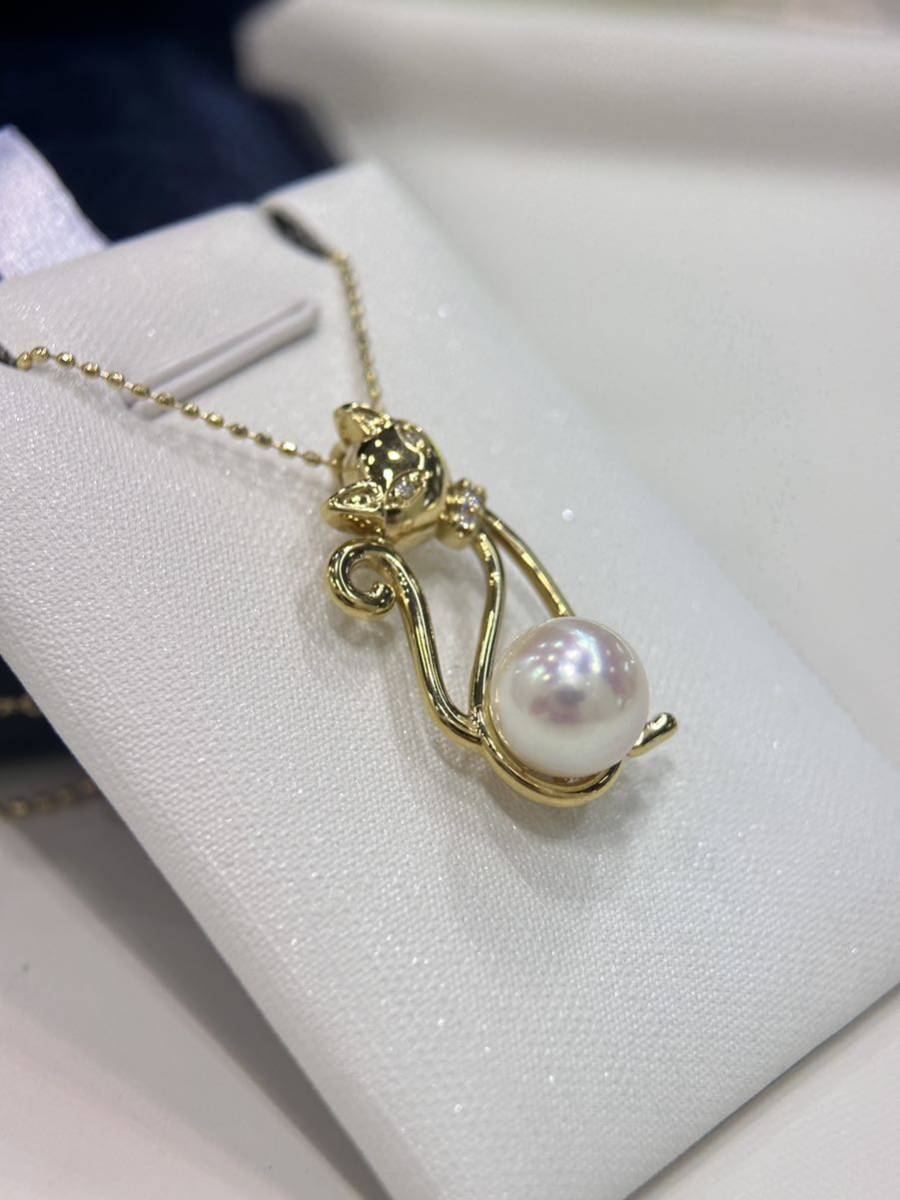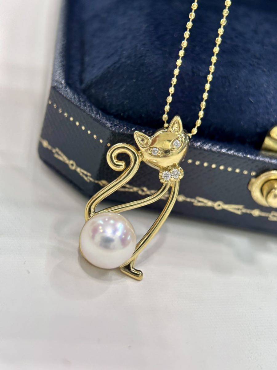 K18金を使用した天然ダイヤモンドアコヤパールペンダントになります。