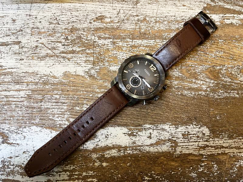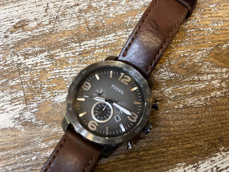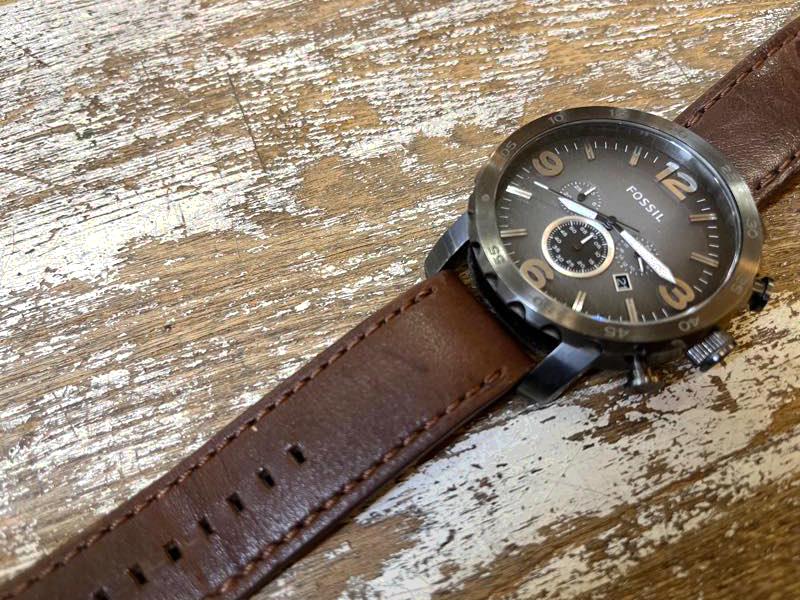 ☆FOSSIL/フォッシル NATE クロノグラフ レザーウォッチ JR1424 ブラウン メンズ アメカジ 腕時計 アクセサリー 古着 used☆
