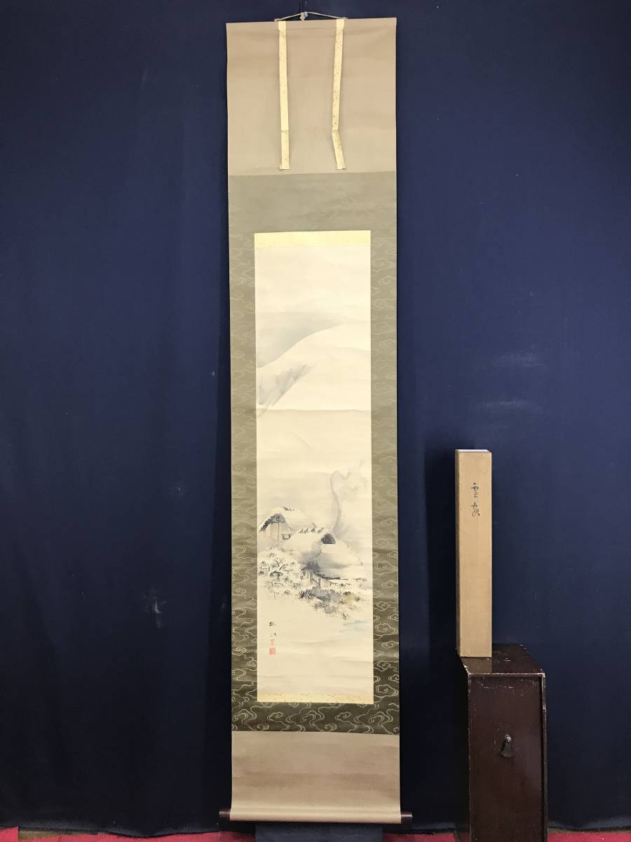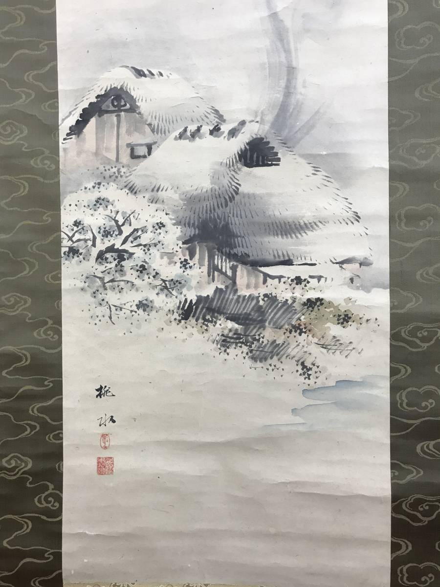 真作/久保田桃水/雪中田家図/山水図/雪景山水図/山村図/掛軸☆宝船☆AE-299