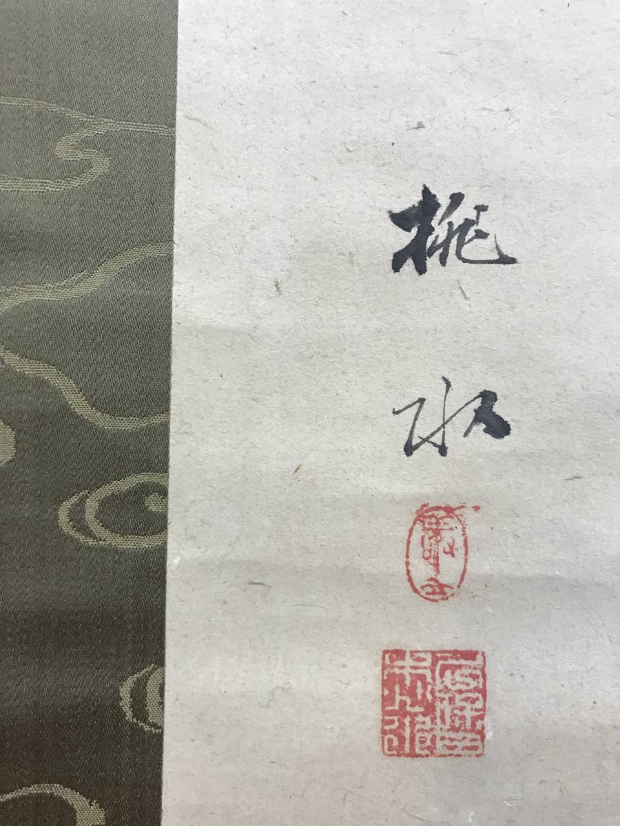 【作品状態】 本紙は紙本肉筆です。本紙は薄汚れ、多少の汚れシミ、折れ、巻シワなどあります。表装は絹表装で概ね良好です。