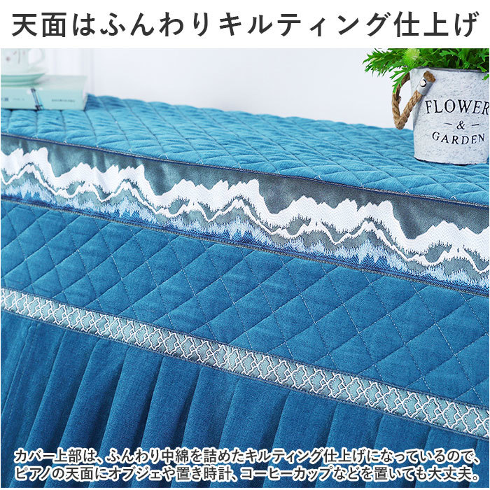 | 商品説明 | ・・お部屋の片隅に佇むピアノを、エレガントな装いにパッと着せ替え!ふわっと被せるだけで装着カンタン「ピアノカバー&チェアカバー セット」が新登場。 ・【ピアノ周りを明るくアップデート】 ・艶やかな黒いパネルをキラリと光らせ、リビングや子ども部屋に鎮座するアップライトピアノ。重厚になりがちな雰囲気を華やかにアップデートするピアノカバー。 ・【ホコリやキズからピアノを保護】 ・鏡面のようなピアノのパネル表面に、柔らかな生地感のカバーをすっぽり足元まで被せることで、降り積もる小さなホコリや傷付きからピアノを優しく保護。 ・【カバーを外さず、そのまま弾ける】 ・滲むような色合いが特徴の杢調ポリエステル生地をゆったりとドレープさせ、贅沢なボリューム感を演出。中央のスリット部分を左右に開けば、カバーを外さずにピアノ演奏が可能。 ・【天面はふんわりキルティング仕上げ】 ・カバー上部は、ふんわり中綿を詰めたキルティング仕上げになっているので、ピアノの天面にオブジェや置き時計、コーヒーカップなどを置いても大丈夫。 ・【同じデザインのチェアカバー付き】 ・ベンチタイプのピアノチェアにぴったり装着、ピアノカバーとトータルコーディネートができる、同じデザインのチェアカバーが付属。 ・【選べる2タイプ】 ・お手持ちのピアノチェアのサイズに合わせて、シングルチェアカバー(Aタイプ:横幅約60cm)と、ダブルチェアカバー(Bタイプ:横幅約:80cm)の2種類からお好みのタイプがチョイス可能。 ・【ご家庭でカンタンお洗濯】 ・ピアノカバーもチェアカバーも、手軽にお手入れができる簡単ウォッシャブル仕様。いつでも清潔に使えて、小さなお子様がいるご家庭でも安心。(※洗濯ネットをご使用ください。) ・【お部屋に馴染むシックなカラー】 ・お部屋全体を爽やかな雰囲気で包み込む、すっきりと清涼感のあるカラーバリエーション。カバー上部を縁取る、澄みきった空と遥かな山並みを思わせるテープ生地が印象的なアクセント。 |