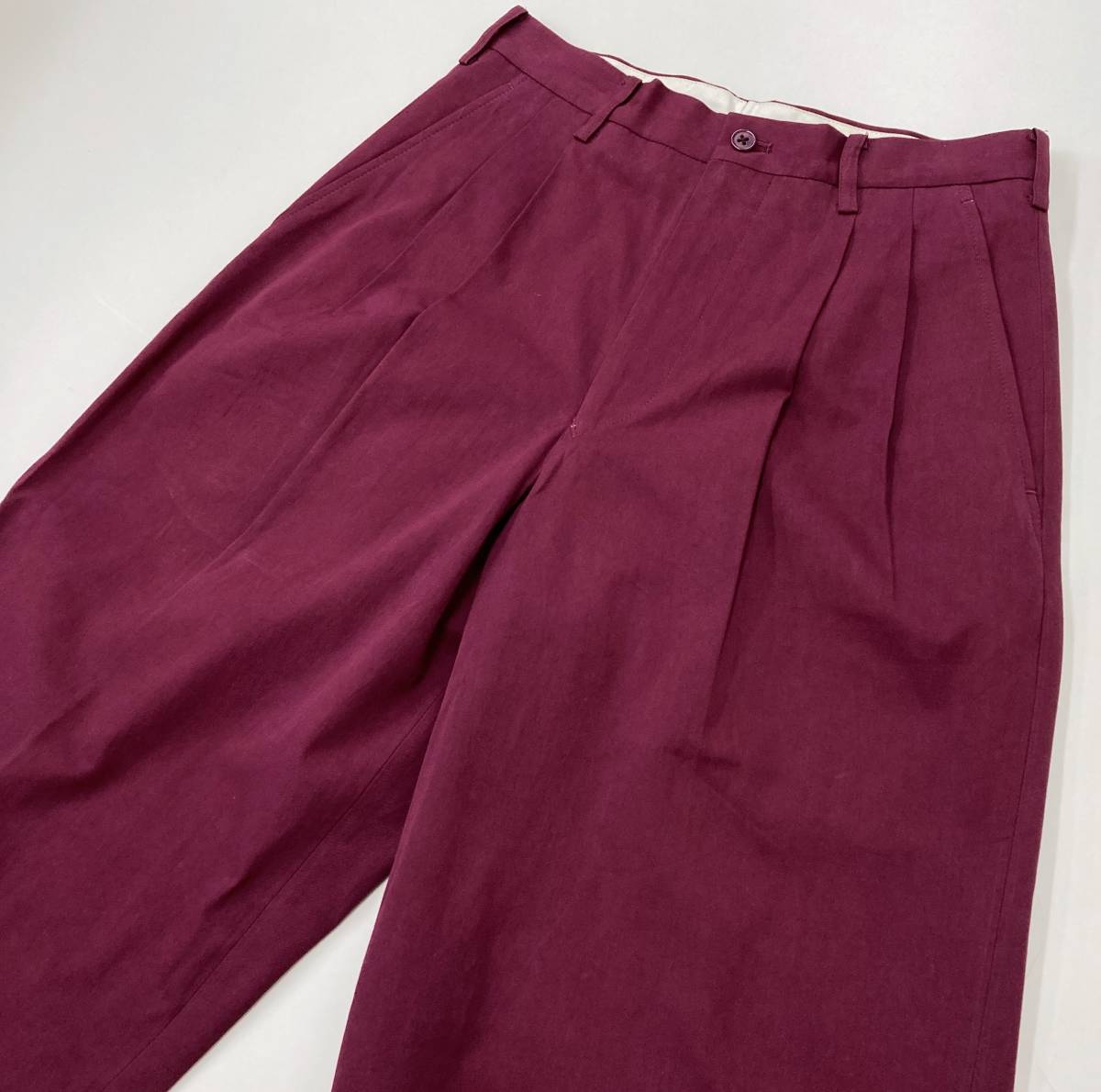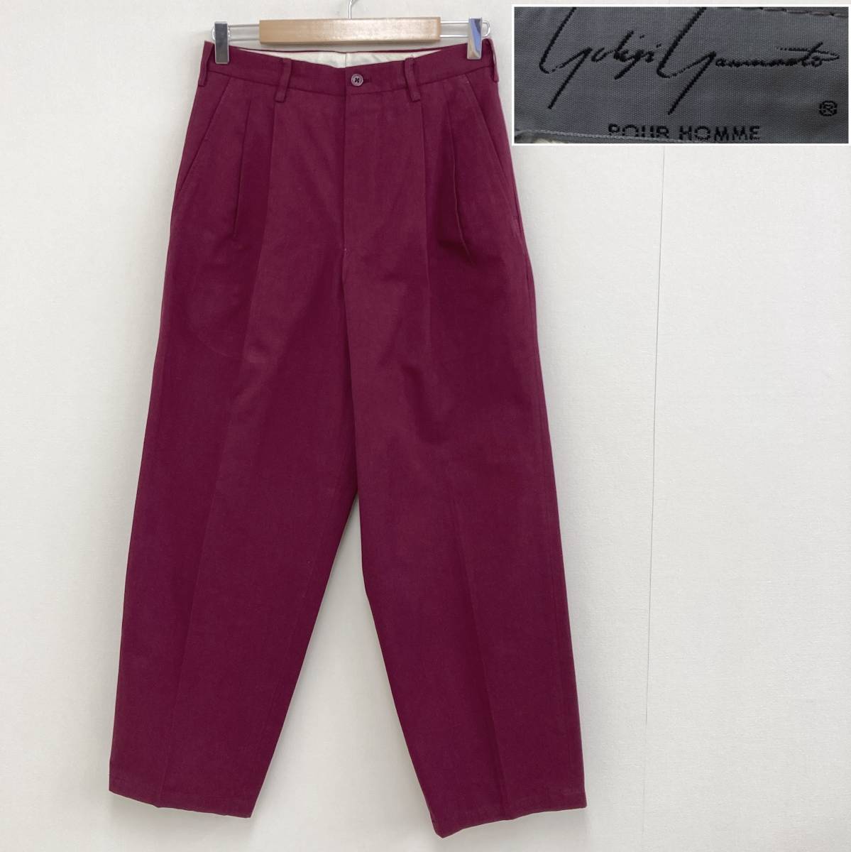80s 90s 丸文字タグ Yohji Yamamoto pour homme 2タック ワイド スラックス エンジ