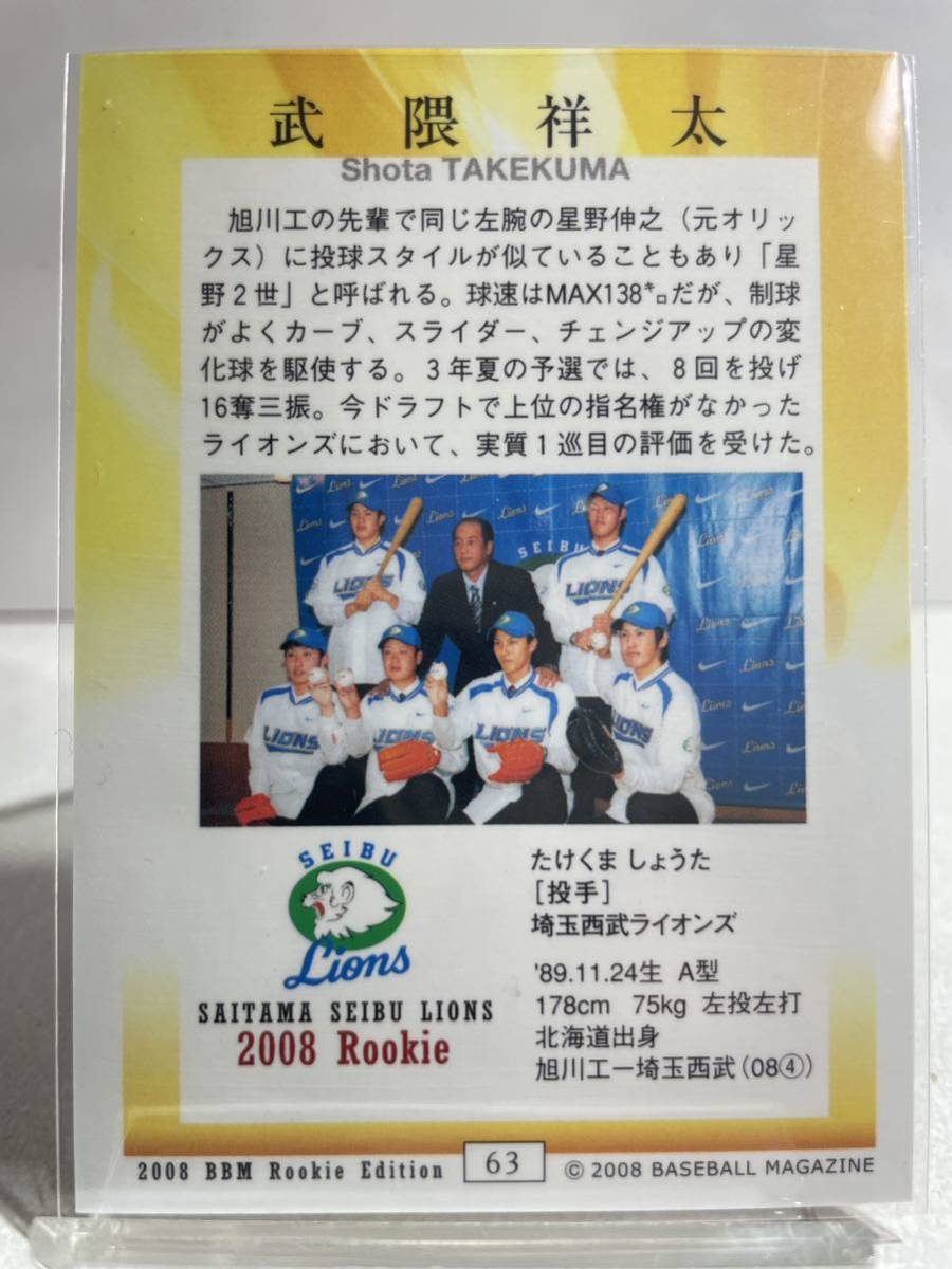 武隈祥太 63 ルーキーカード 埼玉西武ライオンズ BBM 2008 ベースボールマガジン