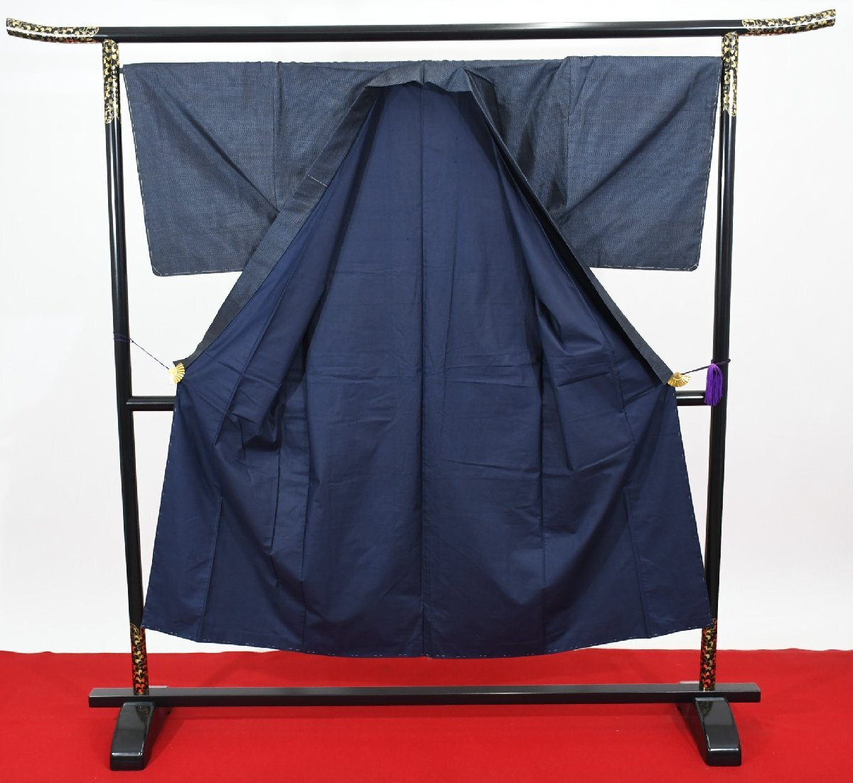 サイズ | ▼身丈 (背中から) 143cm ▼裄丈 68.5cm ▼袖丈 49cm ▼後巾 30.5cm ▼前巾 26.5cm |