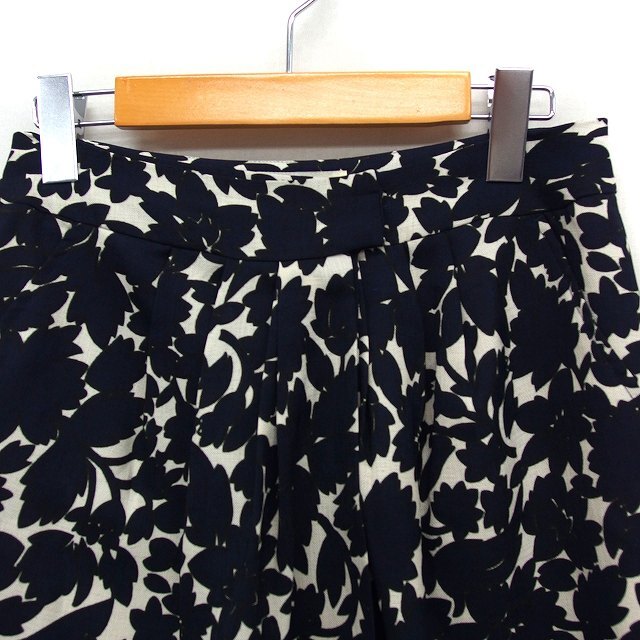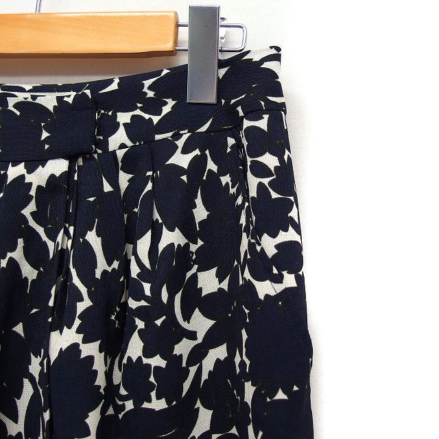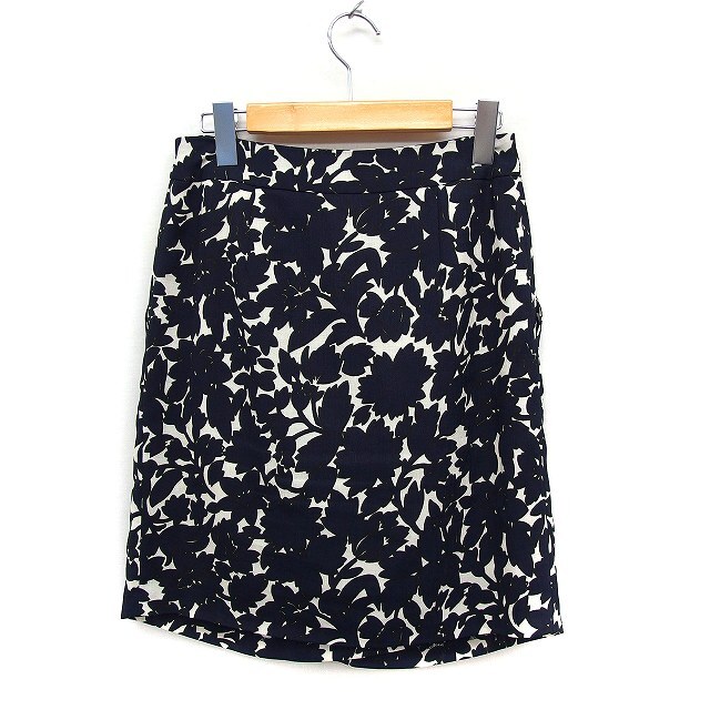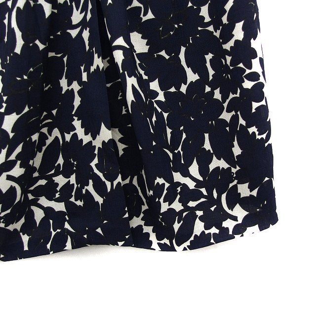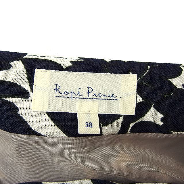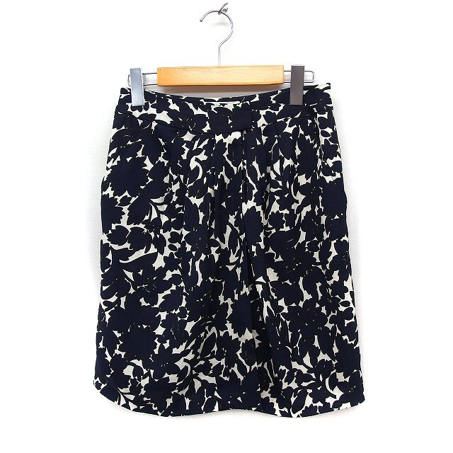 ロペピクニック ROPE Picnic フラワープリント ラップスカート ひざ丈 タック 38 ネイビー 紺 /FT21 レディース