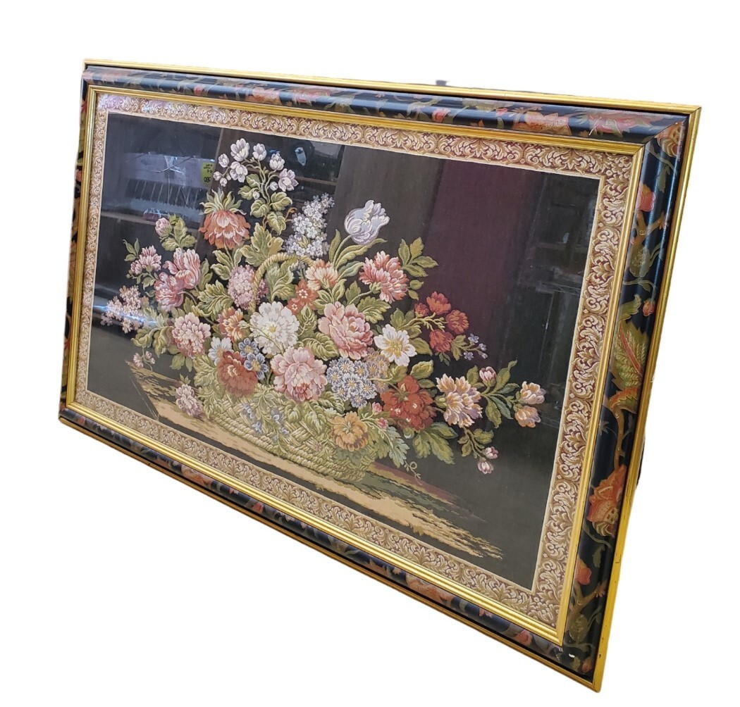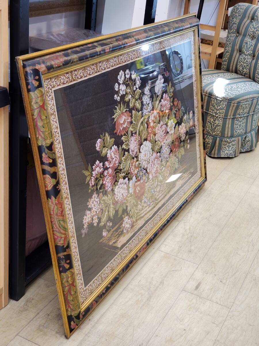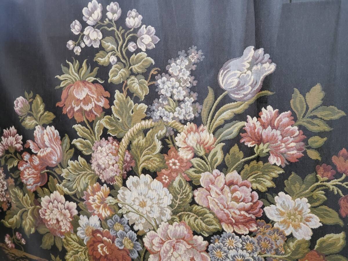 送料無料★ゴブラン織り 花 バスケットフラワー 花柄額 アートパネル タペストリー 縦84×横130㎝ 額入り