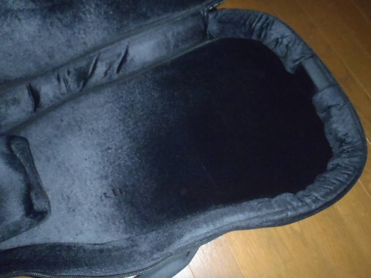 ギグバッグ内部には、収納する楽器に合わせてネックを支えるパッドが装備されています。このバッドは楽器のネック位置に合わせて移動できるように面ファスナーで固定されています。また、ネックはベルトでしっかり固定されますので、ケース内で楽器が動くことがなく衝撃から守られます。