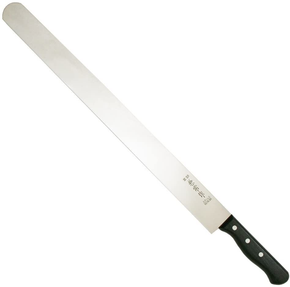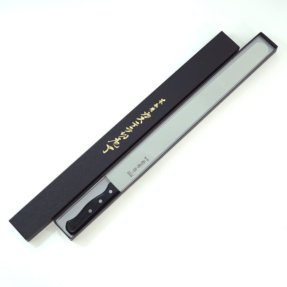 薄く、長い刃が特徴です。さっと切れ目を入れて、長い刃をいっぱいに使い、引いて切ると切断面が綺麗に切れます。