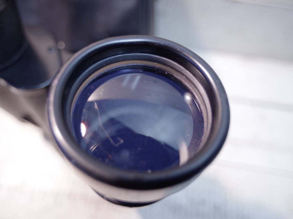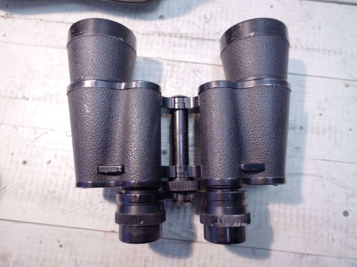 こちらは双眼鏡です。コレクターよりお譲りいただきました。覗いたところレンズはキレイにみえました。左右に画角差があり調整が必要だと思われます。本体表面が経年劣化しベタつきがでています。現状でのお渡しです。万が一使用に際してのメンテナンスはお客さま自身でお願い致します。セカンドハンド品につき、傷・汚れなどございます。よろしくおねがい致します。