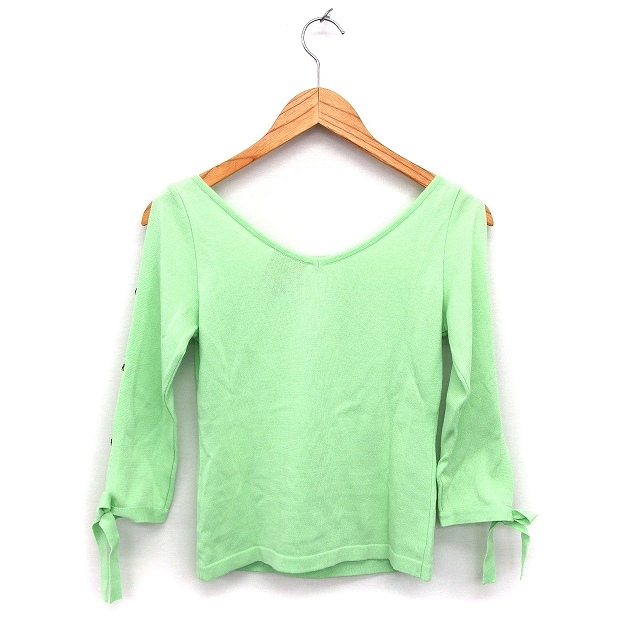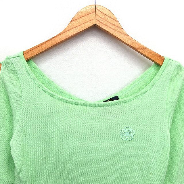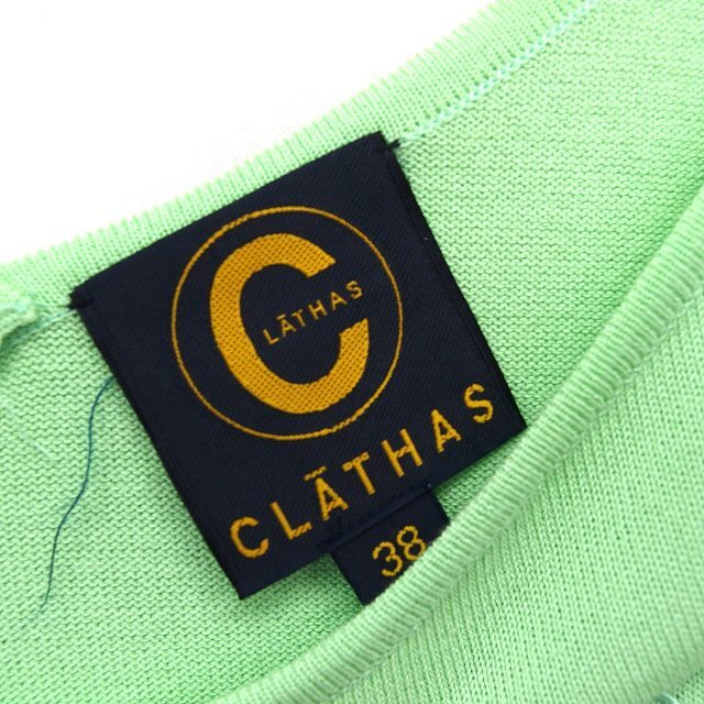 クレイサス CLATHAS カットソー ショート リボン ロゴ 刺繍 七分袖 コットン混 38 パステルグリーン /NT26 レディース