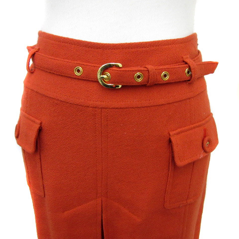 ノーリーズ Nolley's sophi フレアスカート ひざ丈 無地 ウエストベルト付き ウール 36 赤 レッド /YS3 レディース