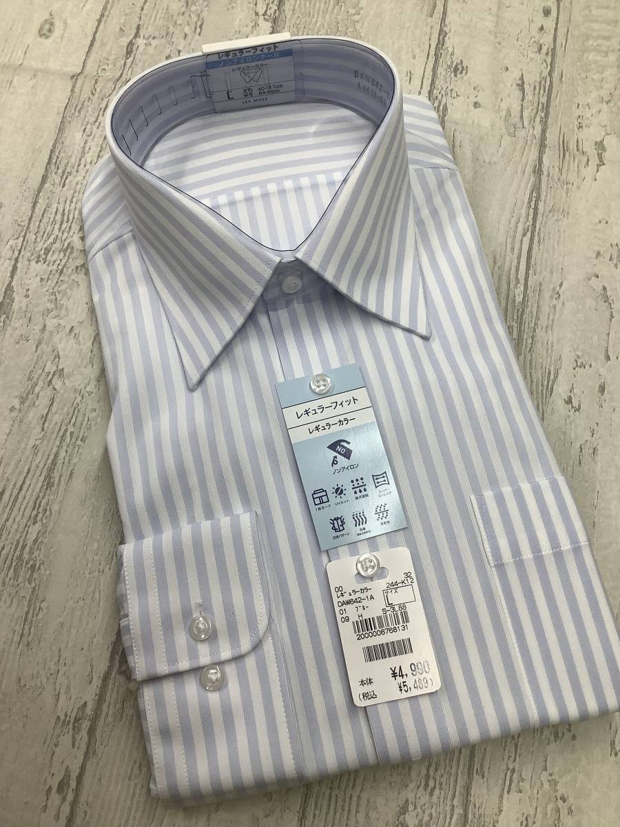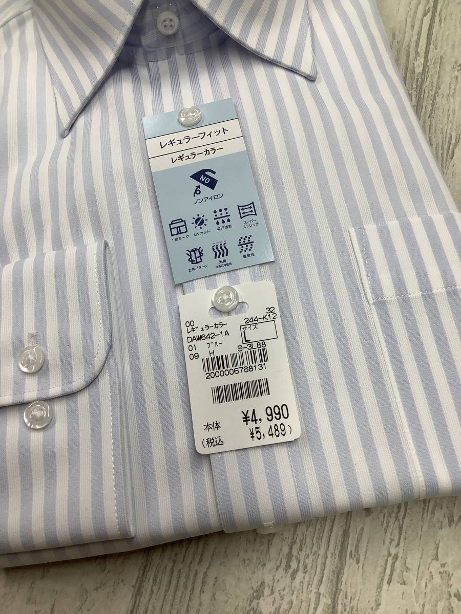 新品未使用★41-86 長袖Lサイズ ★ブルー白ストライプレギュラーカラー 定価4,990円ワイシャツ スーパーストレッチ