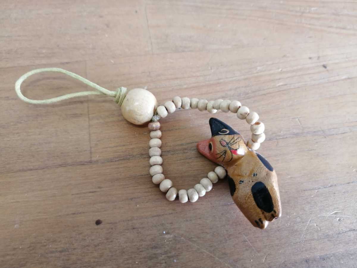 新品2個セット お座り猫 木彫り キーホルダー 検索:チャーム 猫グッズ 三毛猫 バリ猫 アジア雑貨 エスニック