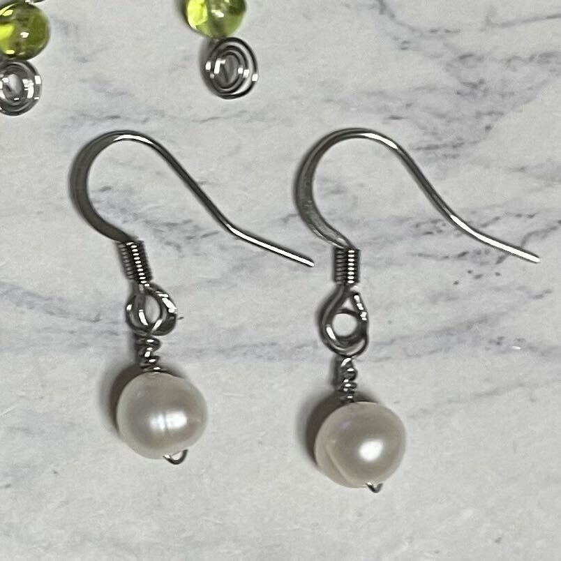 ペリドット 丸玉4㎜、淡水パールの天然石を使用。