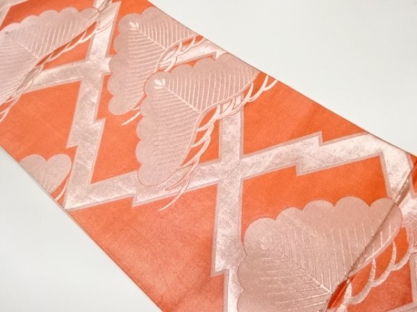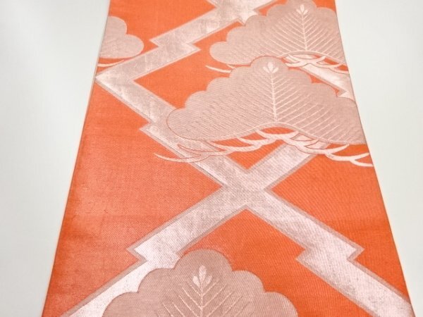 ys6944568; 松皮菱に松模様織出し全通丸帯【着】