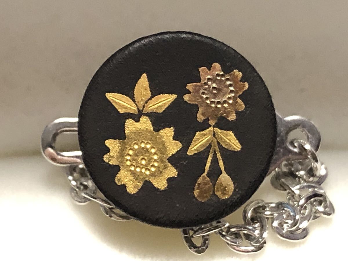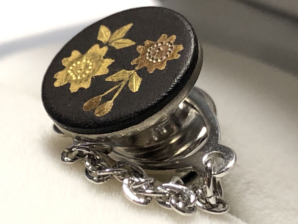 純金象嵌を使用した、桜細工のタイタックです。金属面にくすみがあります。