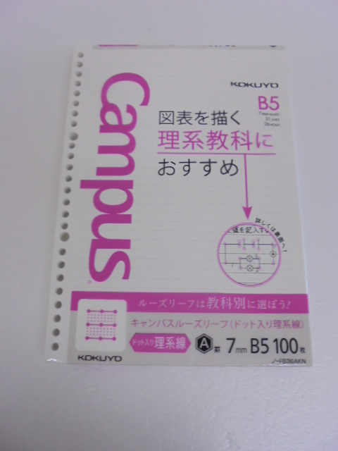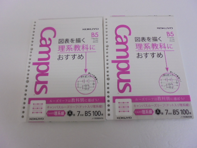 【KCM】□hbg-9-2s★新品★コクヨ Campus キャンパス ルーズリーフ ドット入り理系線 B5 A罫 7mm 31行 26穴 100枚×2冊 ノ-F836AKN