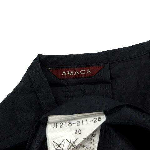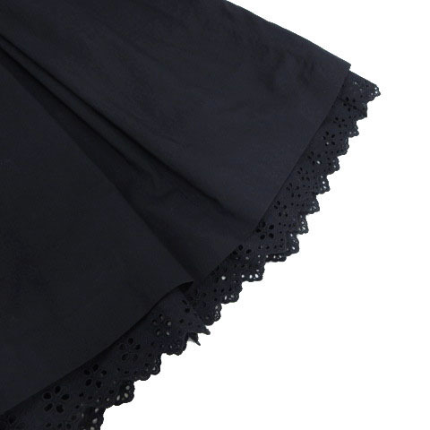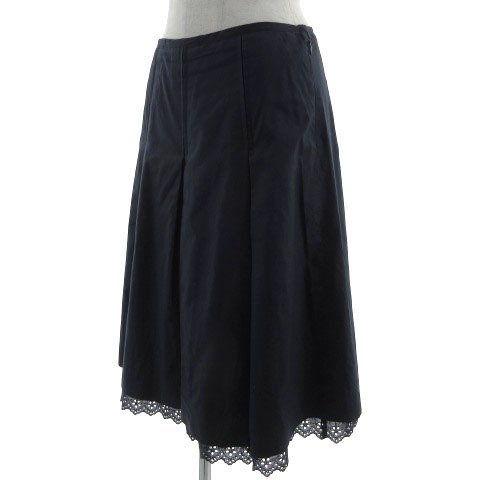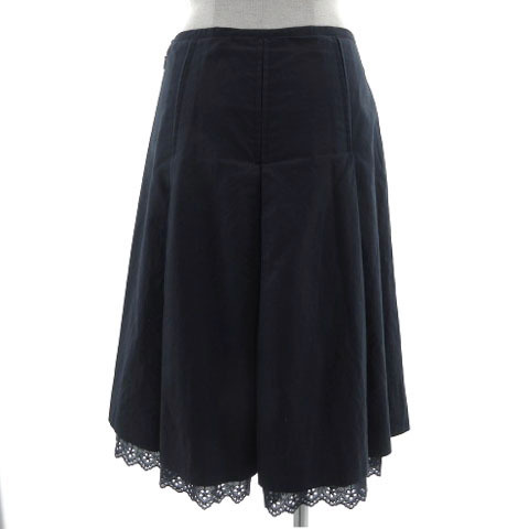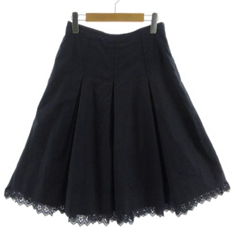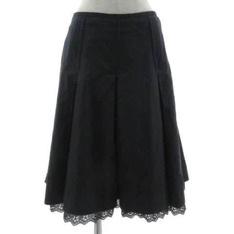 アマカ AMACA スカート フレア タック ミディ丈 裾レース ネイビー 紺 40 レディース