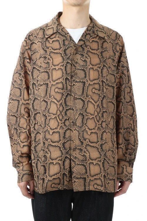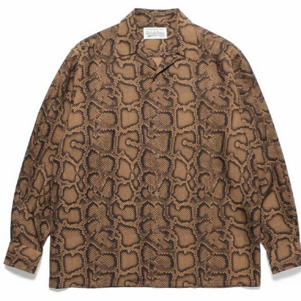 WACKO MARIAの2022AWコレクションからオリジナルのパイソン柄の長袖のハワイアンシャツ。レーヨン比べ、少し厚みがありふんわりとした質感のリヨセル素材を使用。前立てを柄合わせにしたWACKO MARIAらしい仕上がり。1枚でもレイヤードにも、様々なコーディネートでご使用頂ける1枚です。