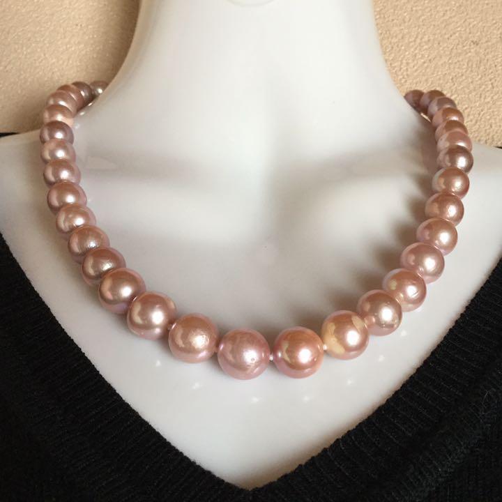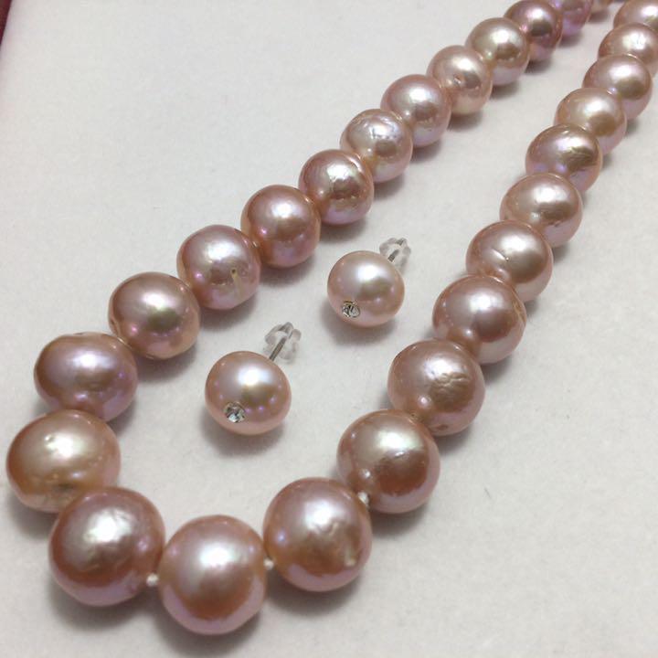 真珠淡水パールには、成長するの時間がかかるため、同じな物は有りませんので、色味と形などが異なります。