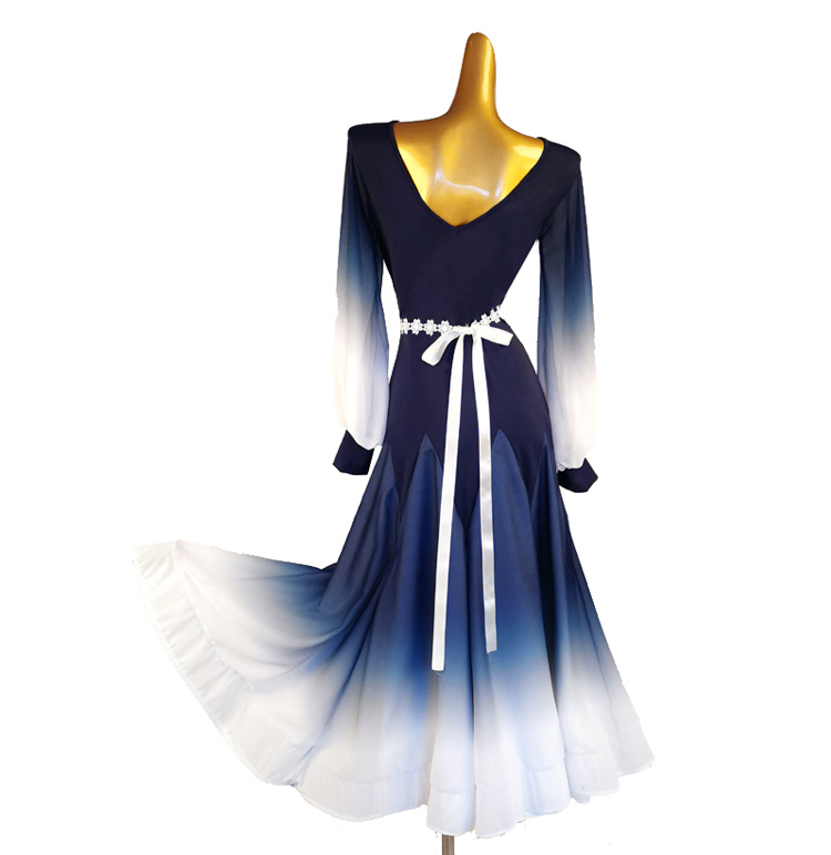 レディース社交ダンス衣装 ダンス競技ドレス 素敵グラデーション 新作 2色選択(白ネイビーと黒赤) サイズ調整可 S~XXL