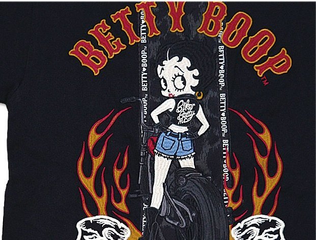 1920年代~40年代にアメリカでワークウェアを中心とした製品を世に送り出したブランド「The BRAVE-MAN」から「BR×BETTYコラボ 天竺半袖Tシャツ(BBB-2414)」のご紹介です。 大きな瞳とぽってりした赤い唇が印象的な女の子、ベティ・ブープ(Betty Boop)。 背中には愛車に跨るベティの姿が刺繍で描かれています。 バイクに合わせたクールなコーディネートも魅力のひとつ。 絵柄上下のロゴは刺繍。 縦には別生地が切り替えられており、ロゴ入りのテープで縁取られています。 フロントはシンプルに、左胸にロゴとベティのアイコンを刺繍で配しました。 左袖にはロゴをワンポイントでプリントしています。 ボディーには、ややしっかりとした刺繍に負けない強さを持ったTシャツ生地を採用。 | |||||||||||||||||||||||||