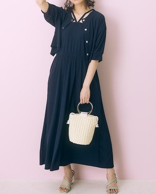 新品☆5L濃紺系♪セットアップ♪カーデ&マキシ丈キャミワンピ☆a637