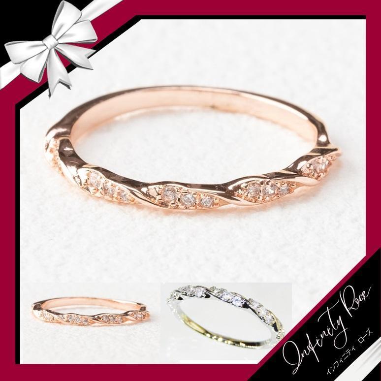 (R006P)12号 ハーフツイストピンクゴールドジルコニアエンゲージリング 指輪 爪留め