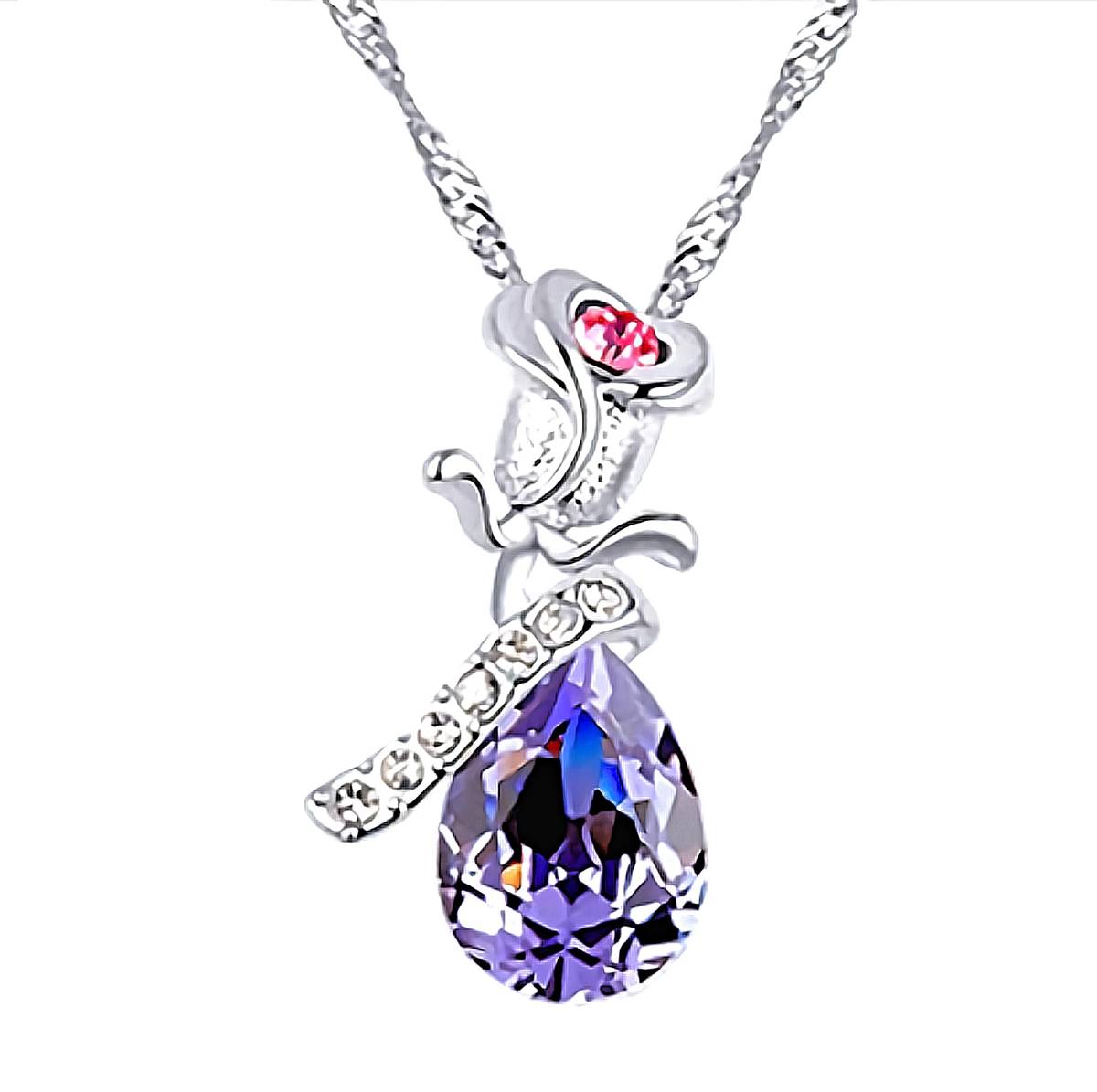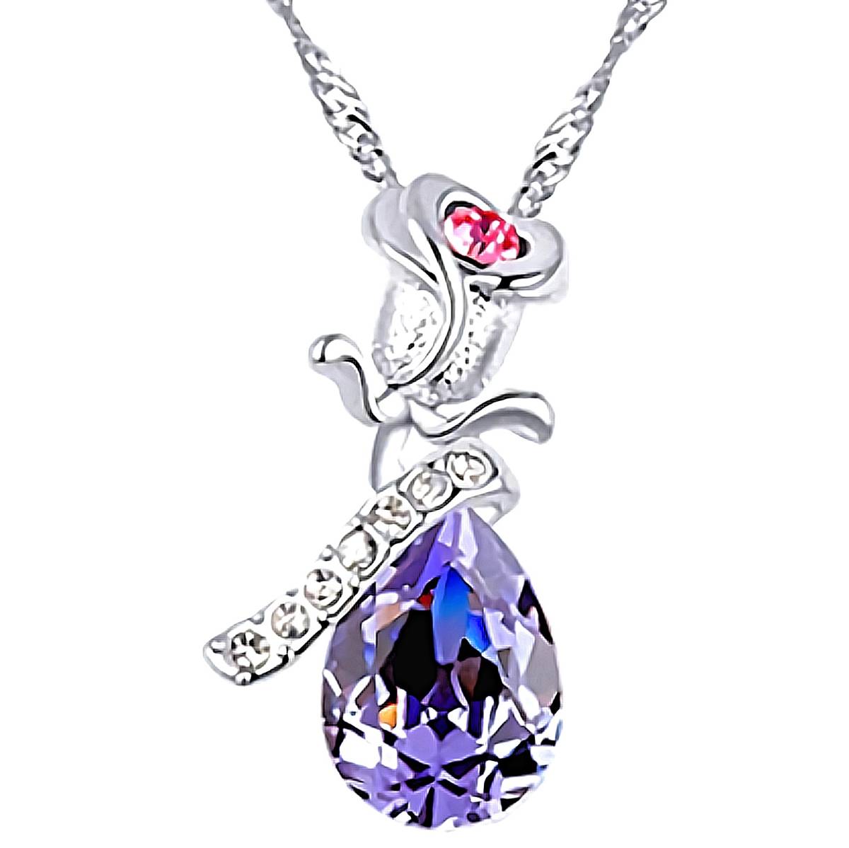 新品★送料無料★紫水晶アメジスト薔薇ピンクダイヤ プラチナ仕上925シルバーネックレス 誕生日プレゼント旅行初春連休ギフト国内発送