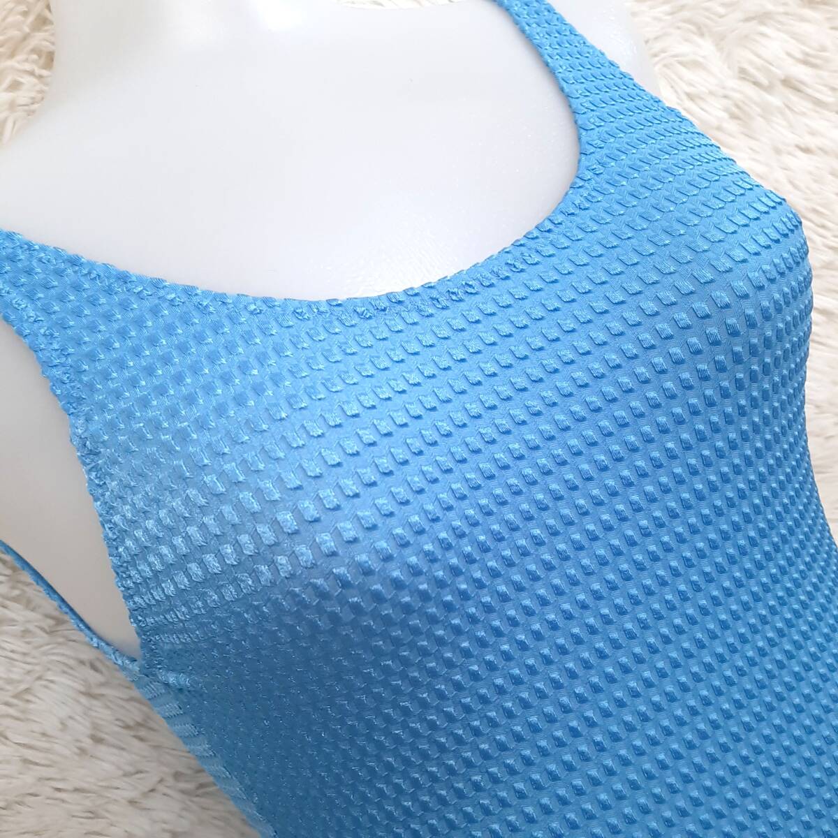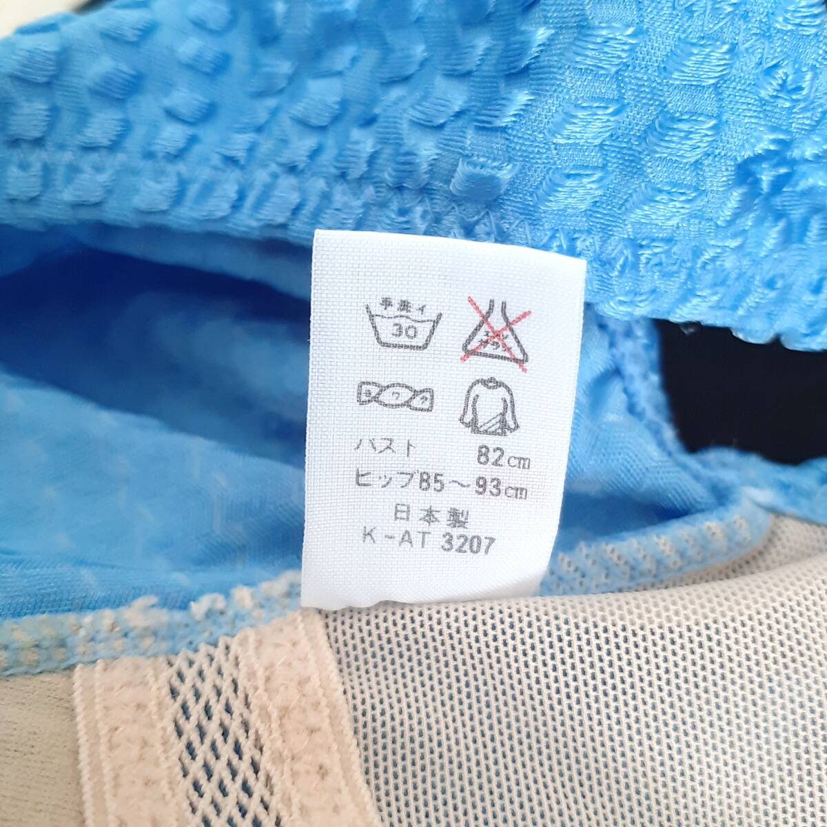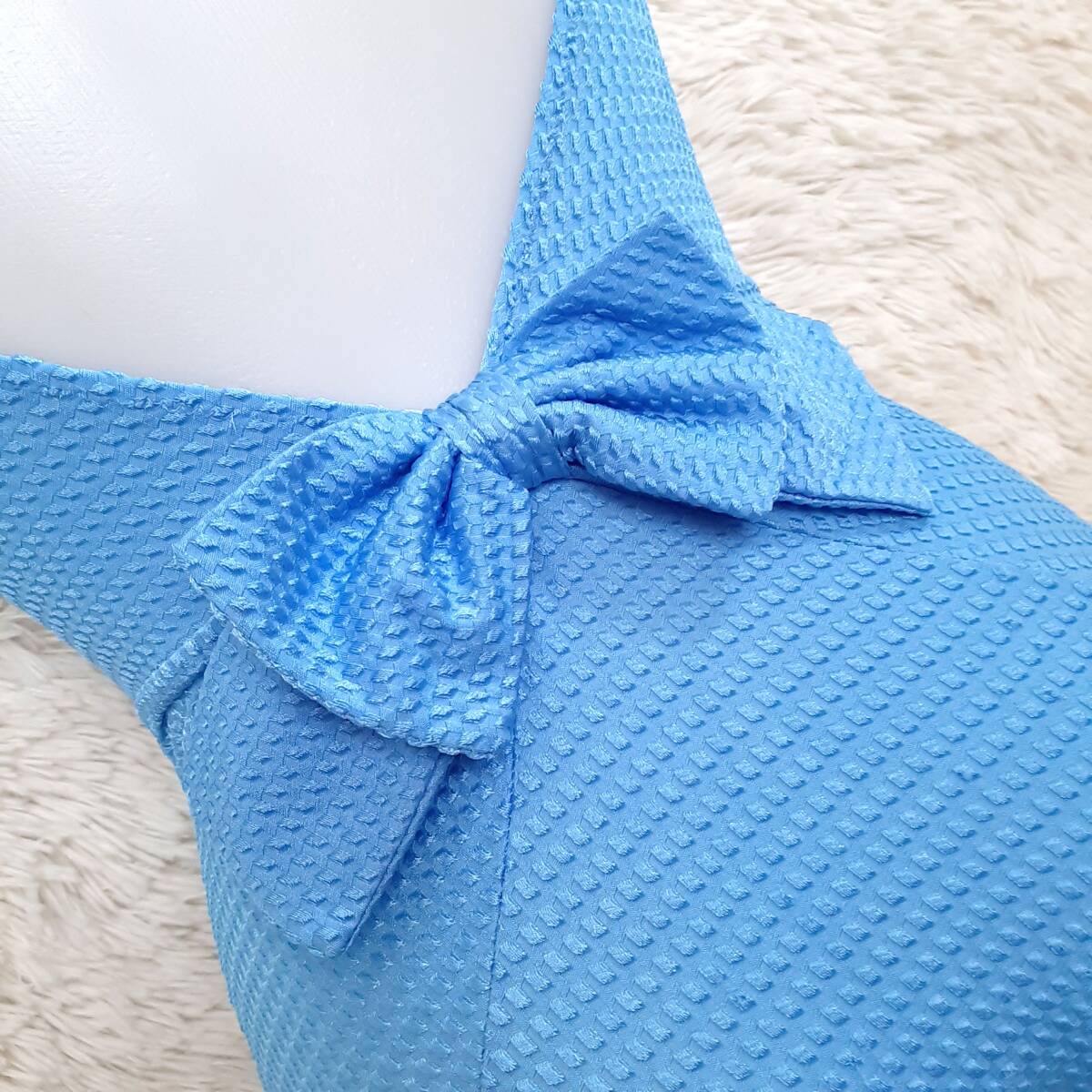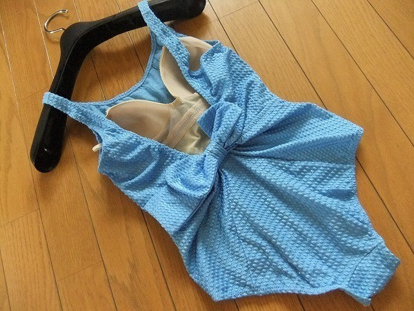 匿名配送 光沢 バックリボン ワンピース 水着 青 水色 9M  日本製 Z