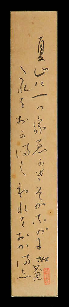 紙本肉筆未装短冊1葉 寸法:36.0cm x 6.0cm 商品状態:概ね良好な保存の品です。 小杉放庵(こすぎ-ほうあん) 1881-1964。明治-昭和時代の画家。明治14年12月30日生まれ。小杉二郎の父。小山正太郎にまなぶ。明治40年「方寸(ほうすん)」同人。渡欧後,大正3年日本美術院に洋画部を設立,11年春陽会を結成した。後年油彩から日本画にうつり,独自の水墨画をえがいた。昭和39年4月16日死去。82歳。栃木県出身。本名は国太郎。初号は未醒(みせい)。代表作に「水郷」「山幸彦」,著作に「放庵画論」など。 出典:講談社『デジタル版 日本人名大辞典+Plus』 |