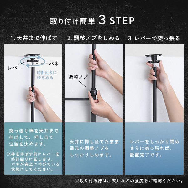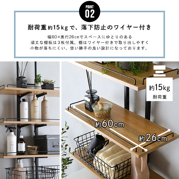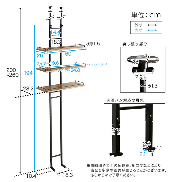 洗濯機上のスペースを有効活用!突っ張りランドリーラック3段