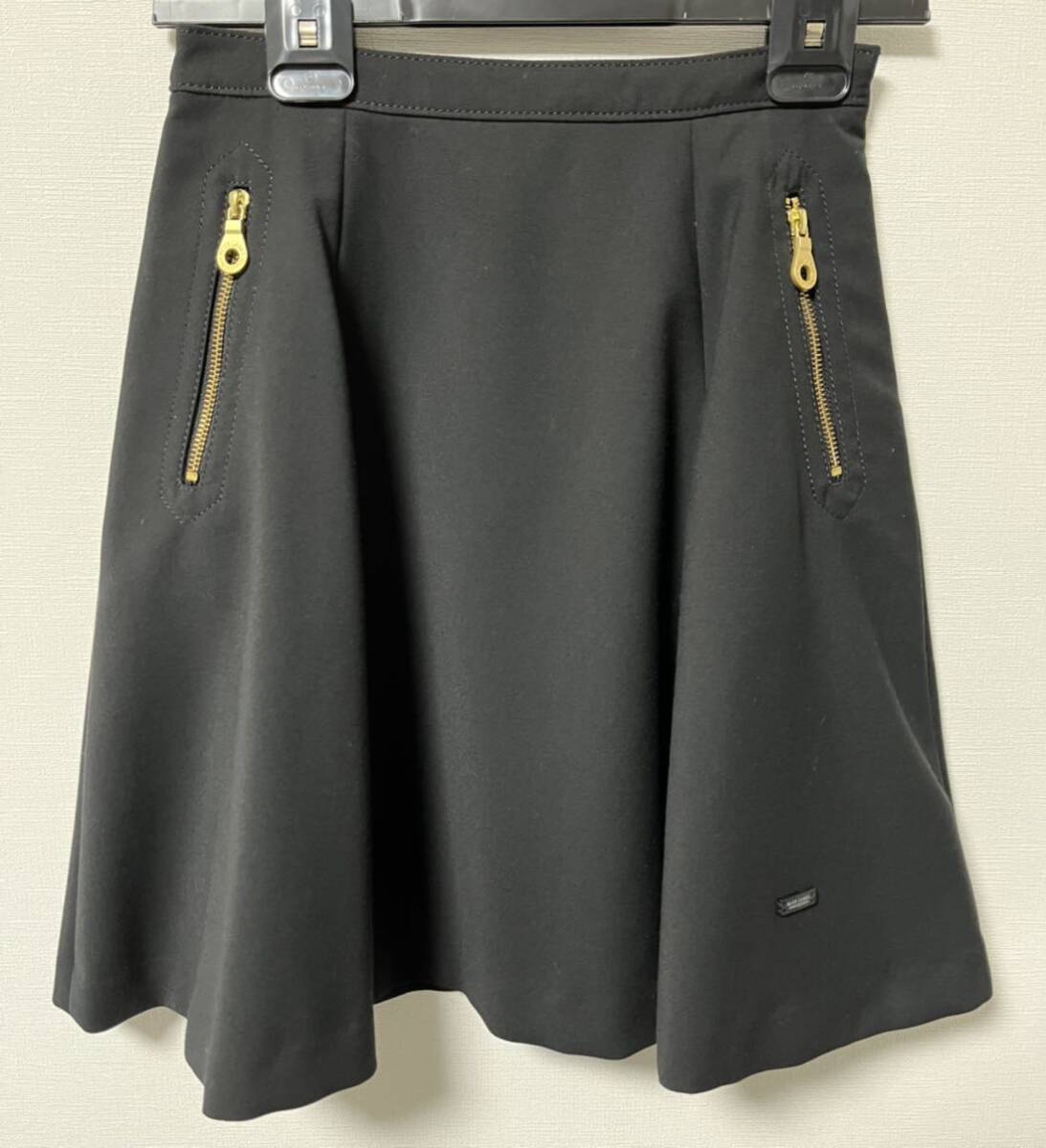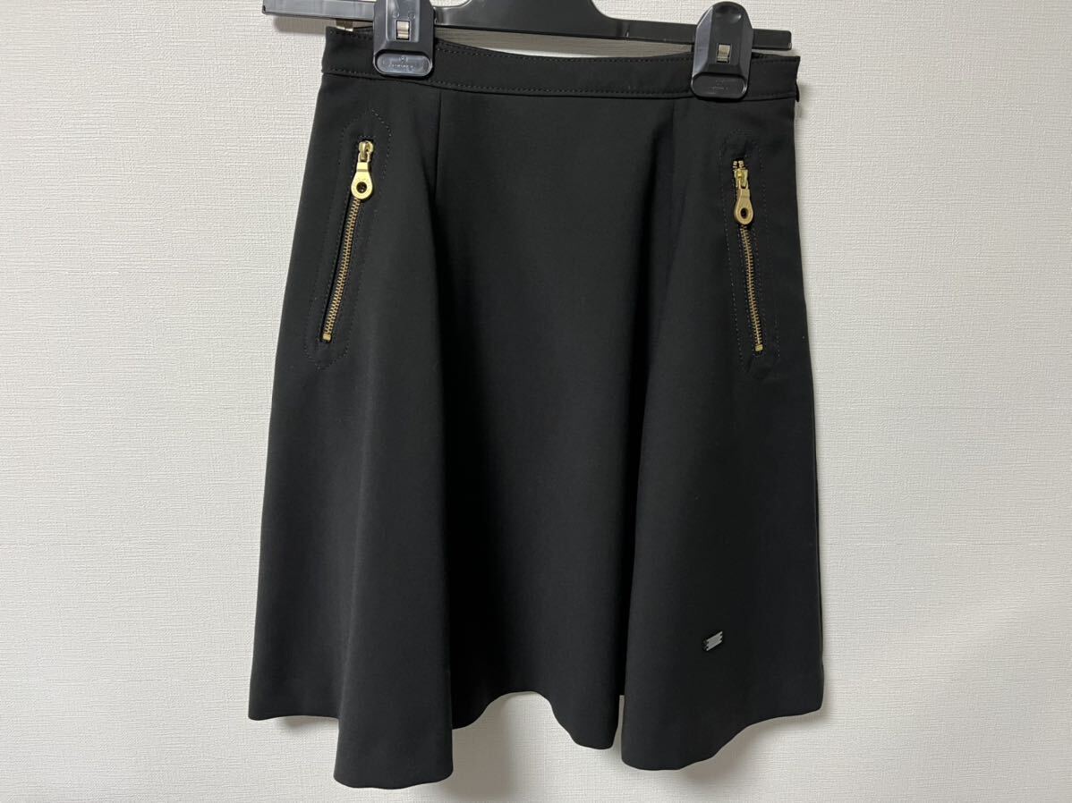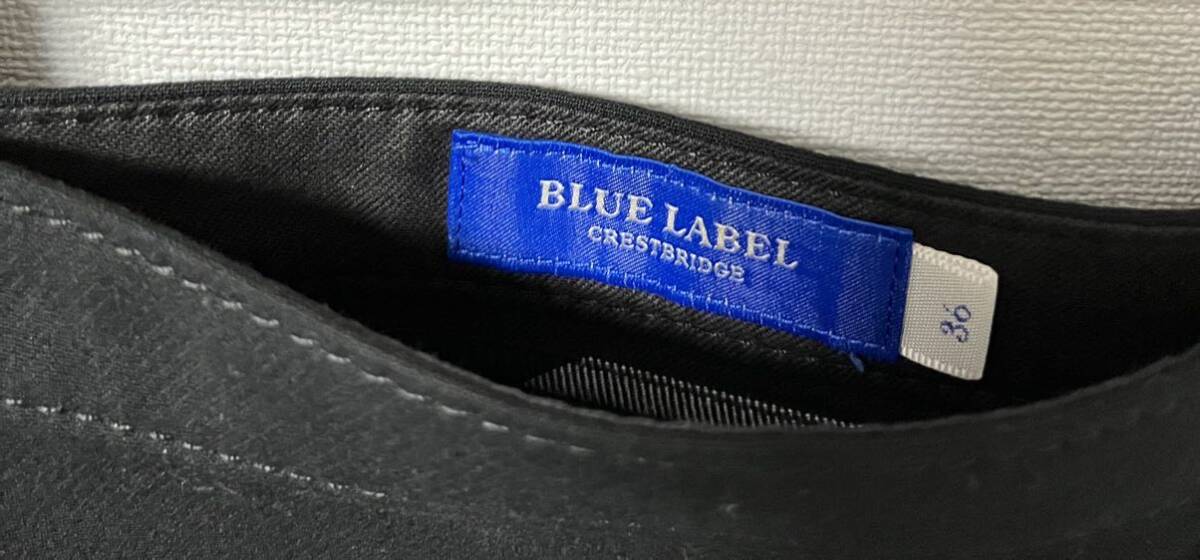 BLUELABEL CRESTBRIDGE のスカートです。カラーは黒です。個人差はありますが160cmの方が着用して膝丈くらいです。定番のフレアスカートで、夏以外なら合わせやすいかと思います。ノークレームノーリターンでお願いします。