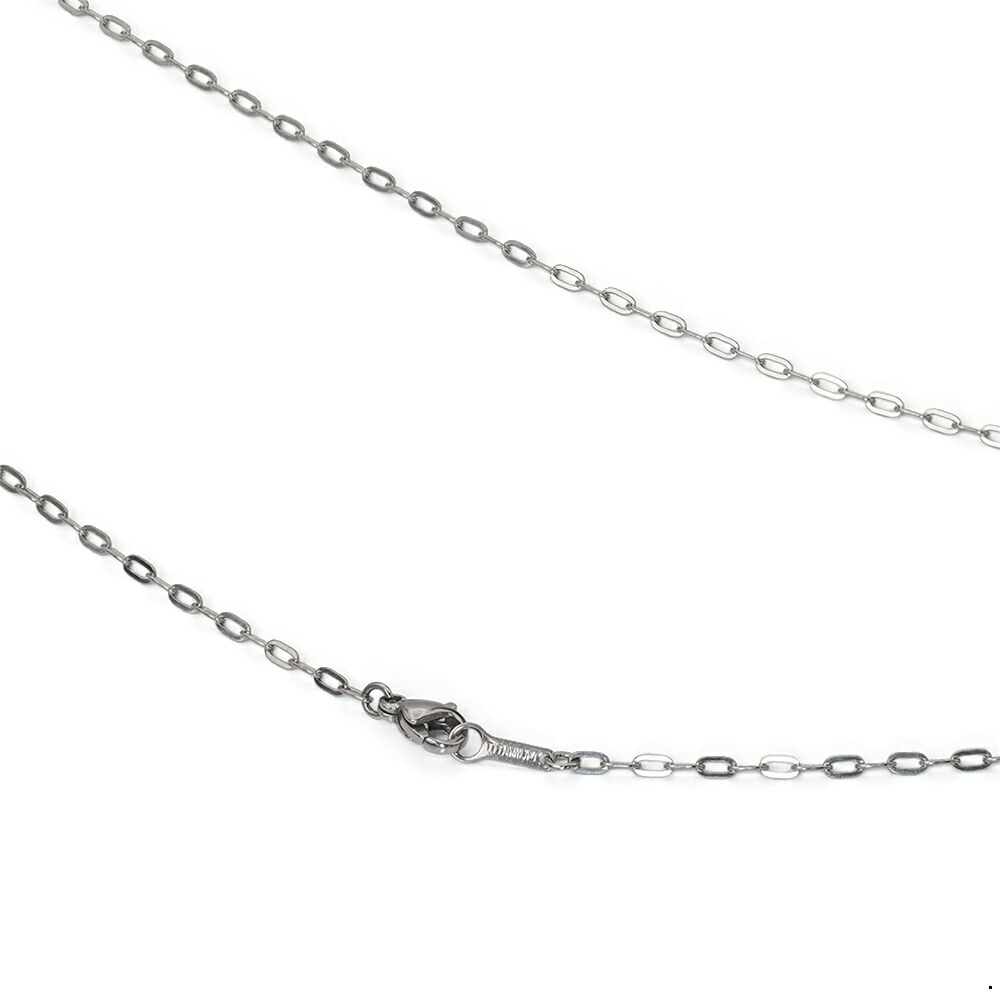 やや長めの小豆(あずき)型のコマひとつひとつに押し潰した様なフラット加工を施したデザインのチェーンです。平たく加工されたコマの表面は光を反射してキラキラと輝きます。 ※当店のチタンチェーンは、溶接部分のチタン純度ですら99.99%以上と限りなく100%に近い値を実現した第一種(JIS規格)純チタン製です。チタンは、身に着けているのを忘れてしまうくらいに軽く、金属アレルギーにとても強い大変優れた素材です。 |