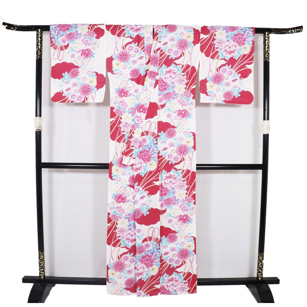 | 色・柄 | 女性用 浴衣 レトロ調 白・ローズピンク地 牡丹・桜・百合・菊・撫子 上品な浴衣です。 ※お使いのディスプレイの種類や設定の差により 実物の色と画像の色が少々異なることもございます。 |