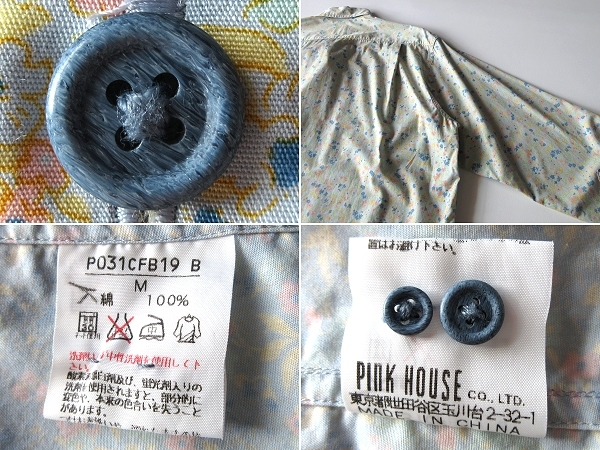 ネコポス対応 Karl Helmut カールヘルム ロゴピスネーム コットン 花柄 フラワー柄 BDシャツ M ピンクハウス PINK HOUSE カネコイサオ
