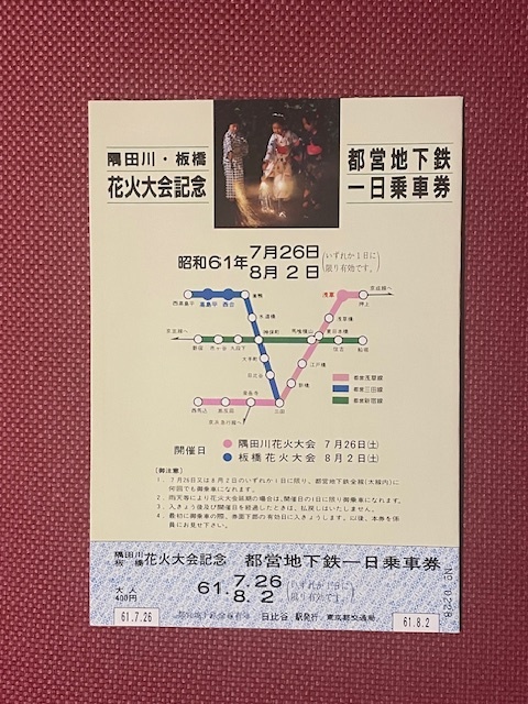 隅田川・板橋花火大会記念 都営地下鉄一日乗車券 昭和61年 (管理番号19-5)