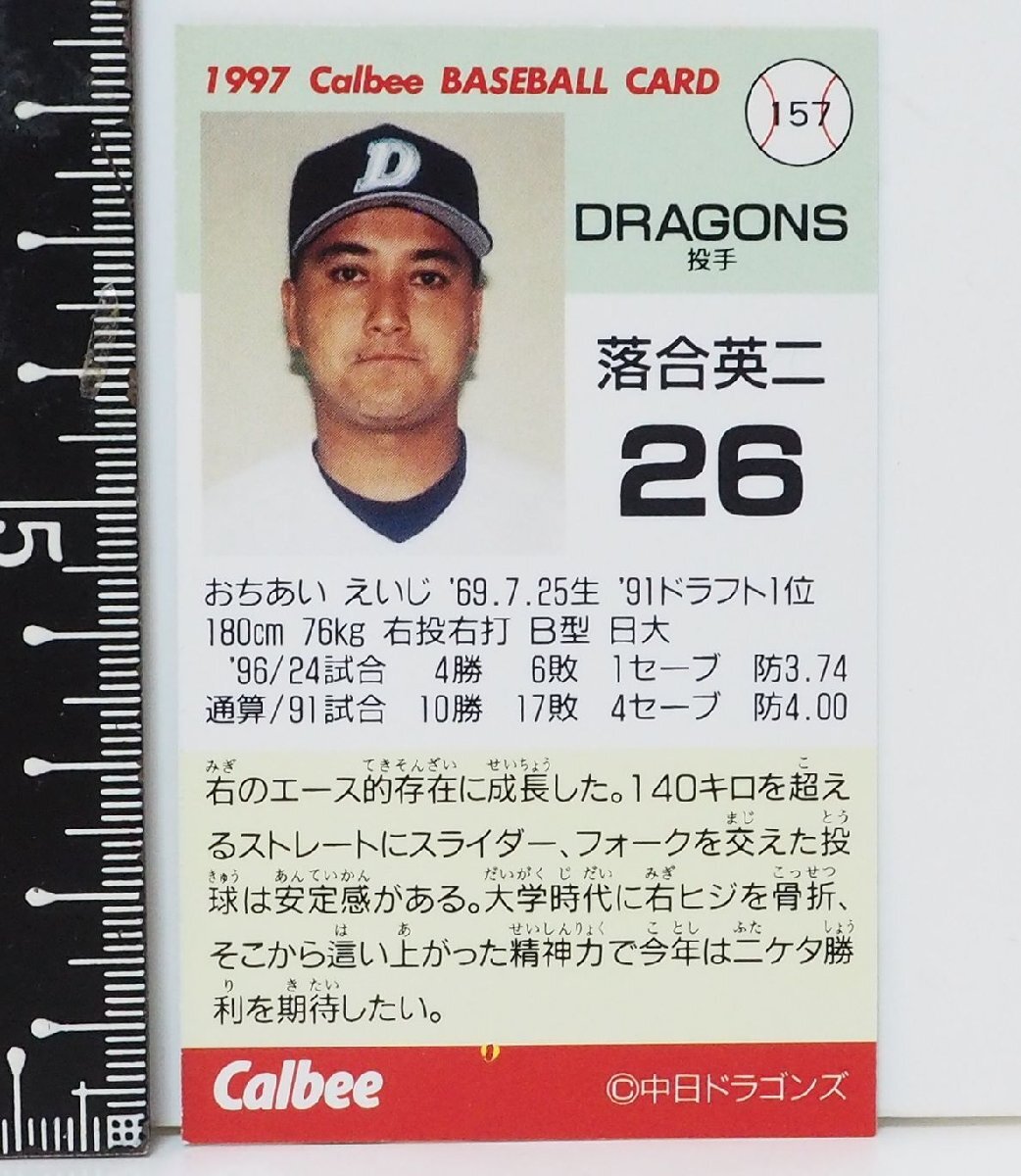 97年 カルビー プロ野球カード 157【落合 英二 投手 中日ドラゴンズ】平成9年 1997年 当時物 Calbeeおまけ食玩BASEBALL【中古】送料込