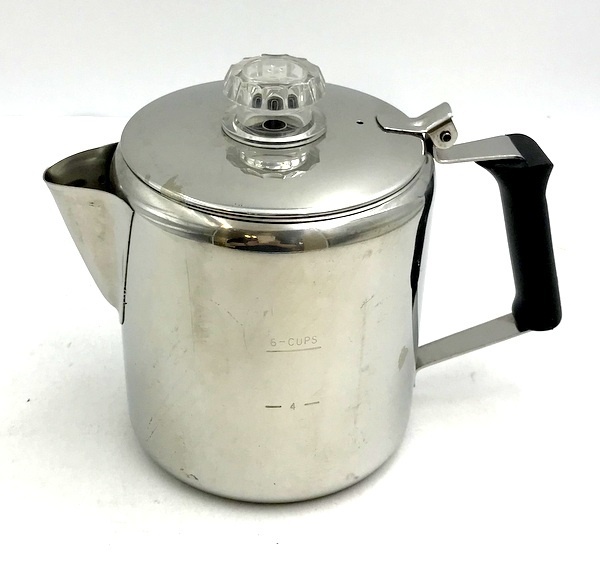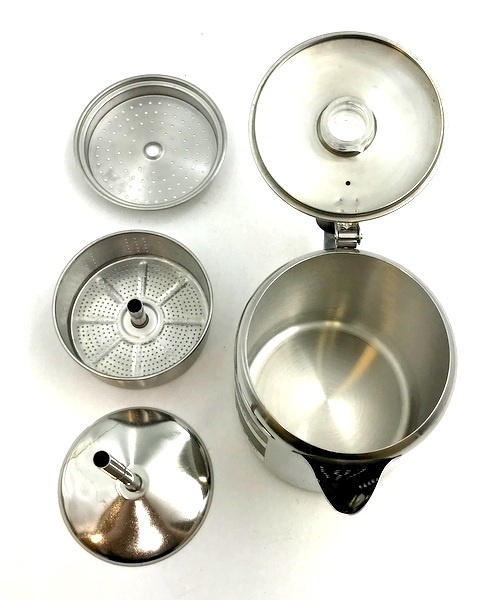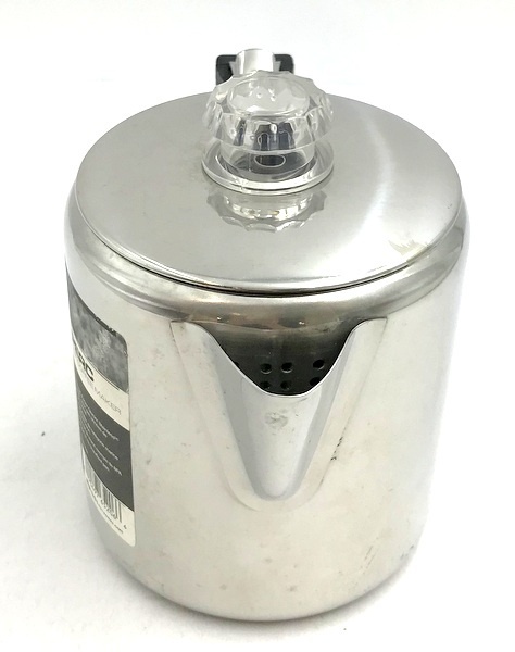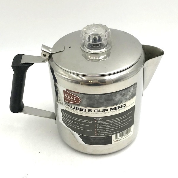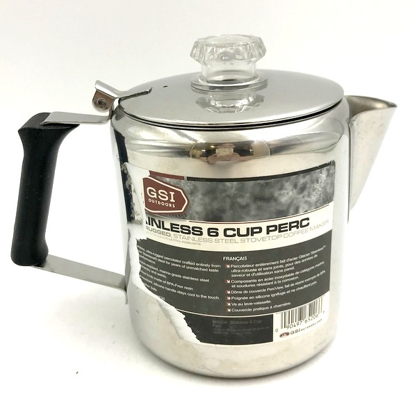 | 商品詳細 | GSI Outdoors(ジーエスアイ アウトドアーズ) グレーシャーステンレス 6カップ パーコレーター 中古品です。 キズや汚れは見られますが、比較的キレイな状態です。 付属品などは無く本体のみとなります。 円柱形のクラシックなデザインの18/8ステンレススチール製パーコレーターです。 家庭やアウトドアで美味しいコーヒーが手軽に味わえます。持ち易いハンドルのデザインですので、 コーヒーを上手に注ぐことができます。注ぎ口はコーヒーの滴がたれないデザインです。 フタの取っ手はプラスチック製で、コーヒーの濃さを確認することができます。 |