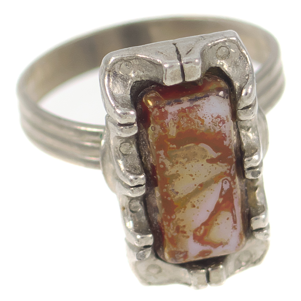 UK1781◆ 赤みのあるブラウン系マーブルストーン 色石 ケルト デザイン イギリス ◆ ヴィンテージリング 指輪 フリーサイズ ◆