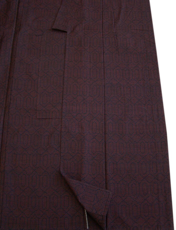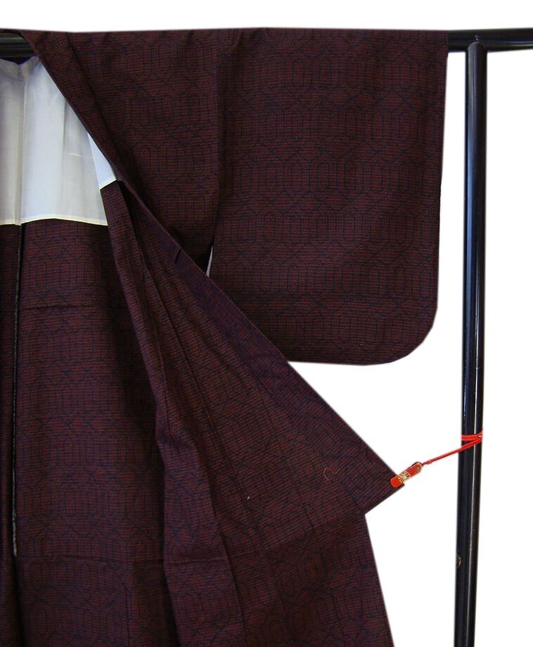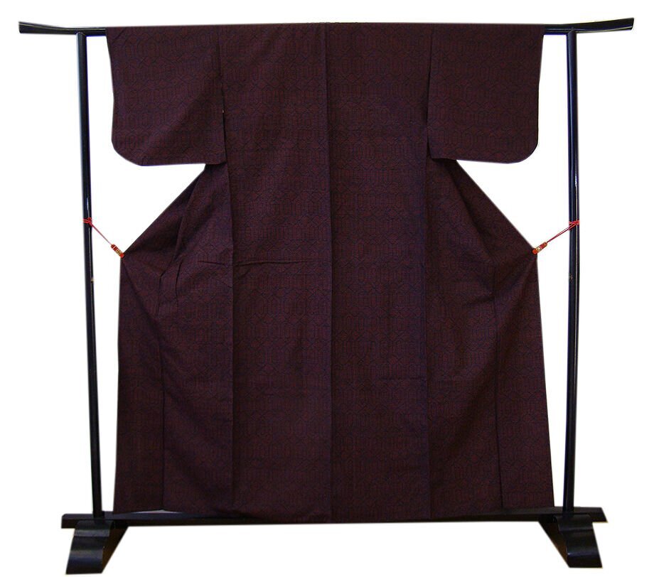 商品説明 | こちらのお品は「単衣」ですので5月、6月、9月にお召頂ければと思います。 着物には、大きく分けて「袷(あわせ)の着物」と「単衣(ひとえ)の着物」と「夏着物」があります。 反物(表地)を着物に仕立てるときに、裏地類をつけるものを袷の着物、 つけないものを単衣の着物と呼び、胴裏や八掛といった裏地がつかない一枚ものの着物です。 また裏地がないため、座る時などにヒップのラインが目立たないよう、 居敷当て(いしきあて)の生地をつけることもあります。 共布の居敷当て(38cm×35cm)が付いております。 しなやかでさらりとして手触り良く着心地良い涼やかな風合いの十日町紬地は、 黒色地にエンジ色の織柄が洒落感高い着物姿を演出しております。 また、肩裏付き、バチ衿仕立てとなっております。 |