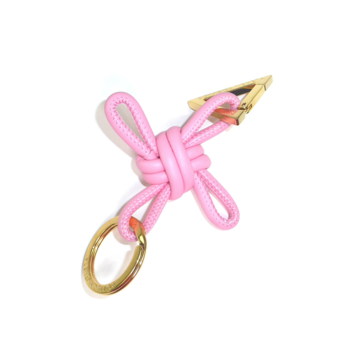 モード感漂う個性的な仕上がりとなったボッテガのキーリング。 ノットのディテールをあしらったレザーに、トライアングルのカラビナとラウンド型のスプリットリングをセットしたスタイリッシュなデザインです。 キーホルダーや、バッグチャームとしてシンプルなバックにイメージの変化をもたらす、ちょっとしたアクセントにも活用できる逸品。 遊び心あふれたお洒落を楽しめ、男女問わずご使用いただけます。 |