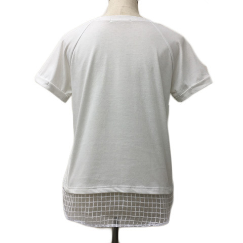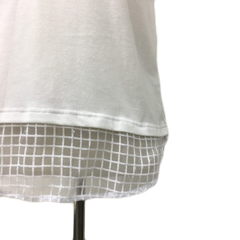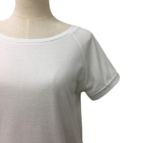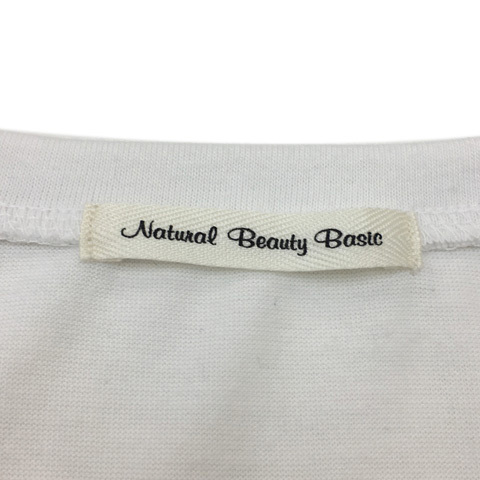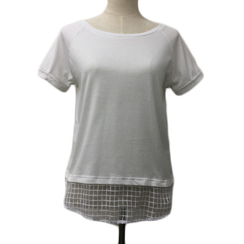ナチュラルビューティーベーシック カットソー プルオーバー ラウンドネック 切替 ドッキング 半袖 M 白 ホワイト レディース