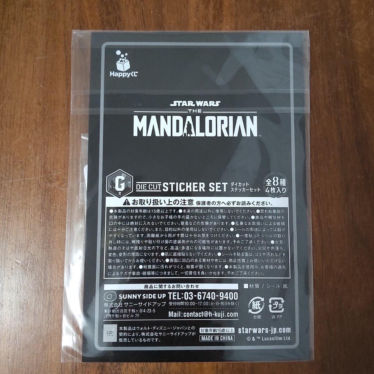 Happyくじ スターウォーズ マンダロリアン G賞 ダイカット ステッカー セット シール グローグー ボバフェット ハッピーくじ 一番くじ 新品